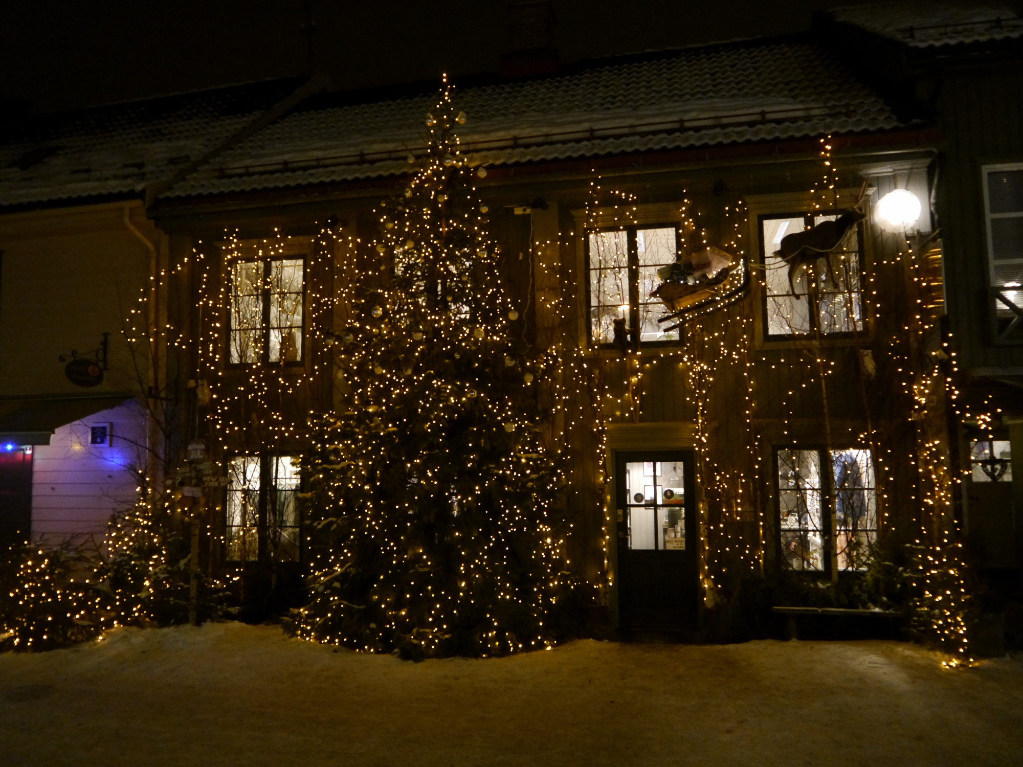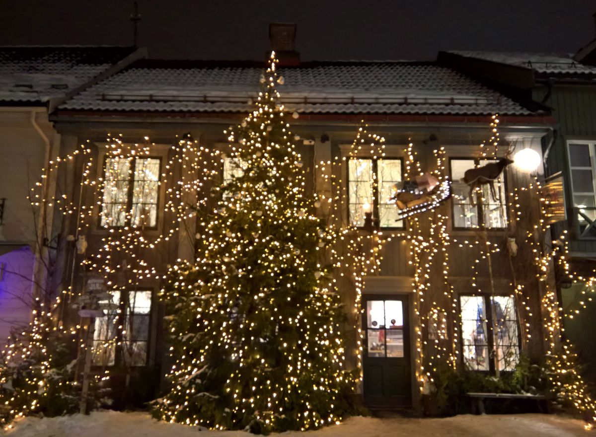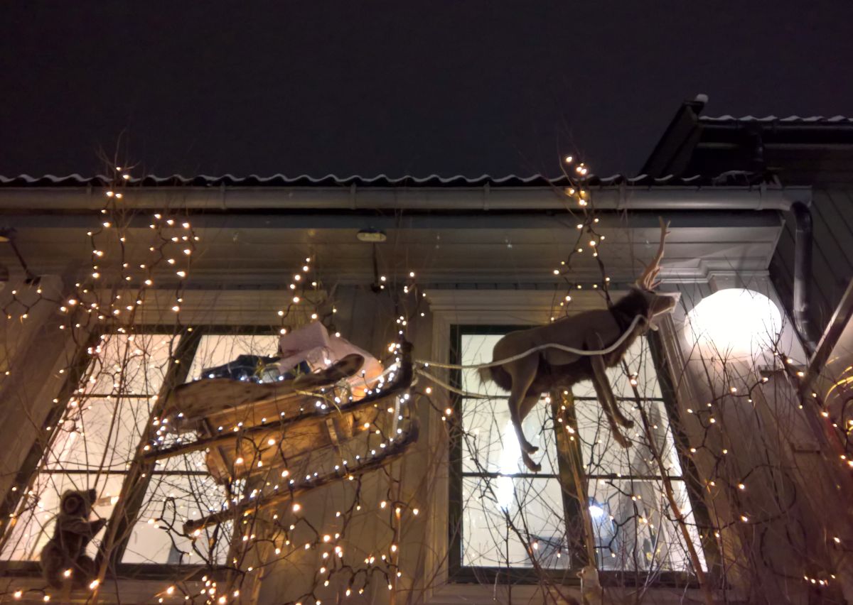 Viele Norweger schmücken ihre Häuser und/oder die Bäume und Sträucher in den Vorgärten. In der Fußgängerzone in Lillehammer sah ich ein Haus, das auf den ersten Blick ein wenig übertrieben wirkte. Ich find's allerdings echt hübsch!