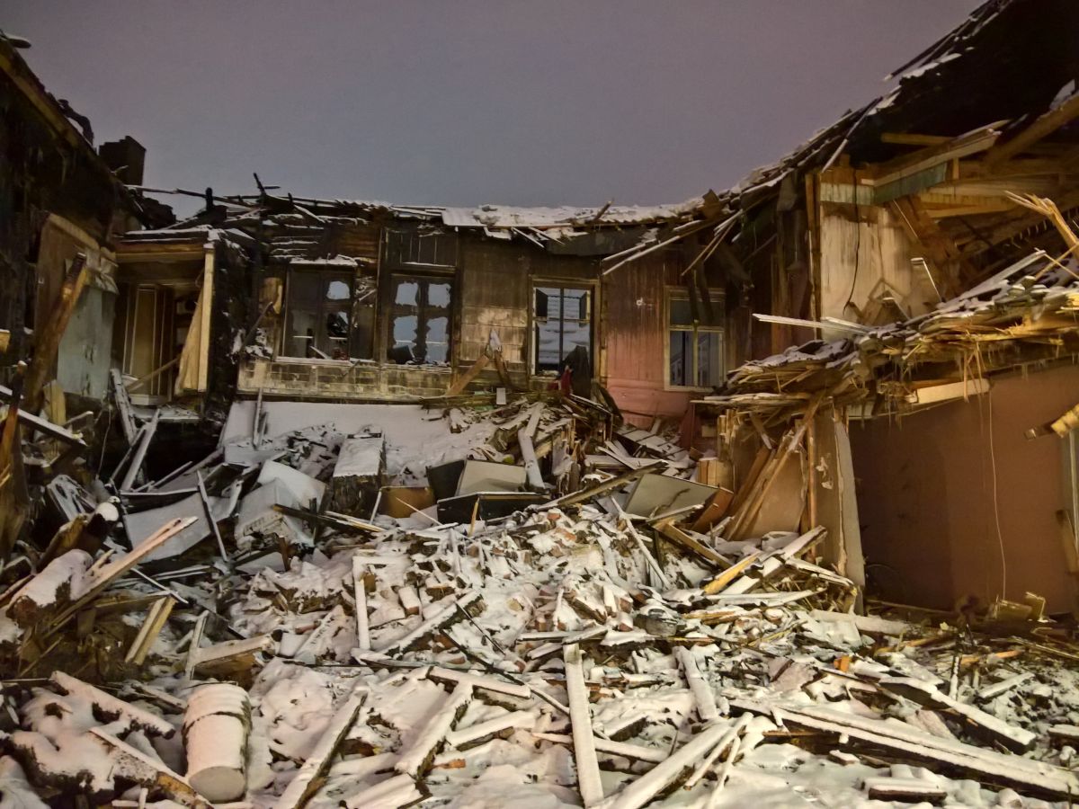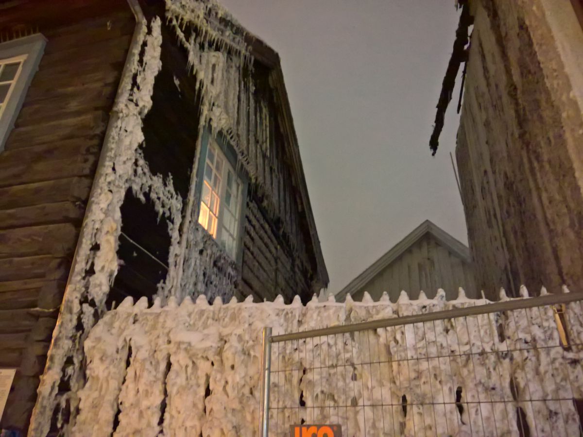 Direkt zu Beginn der Fußgängerzone roch es nach verbrannter Wohnung, ein Geruch, den ich bekanntlich nie vergessen werde. Hier waren gleich mehrere Häuser ziemlich ausgebrannt, eines sogar eingestürzt. An einem Nachbarhaus war das gefrorene Löschwasser. Ich war ziemlich geschockt.