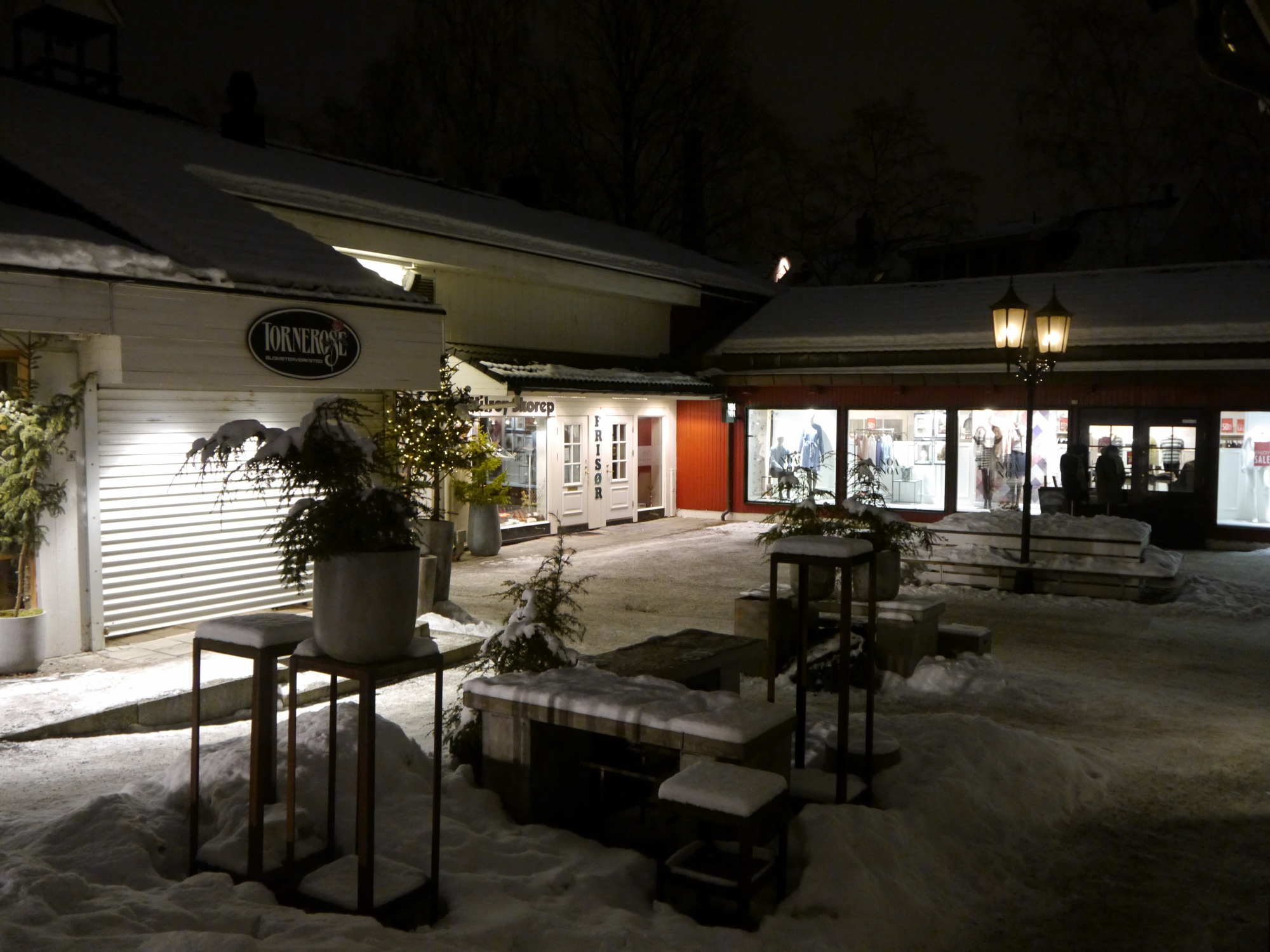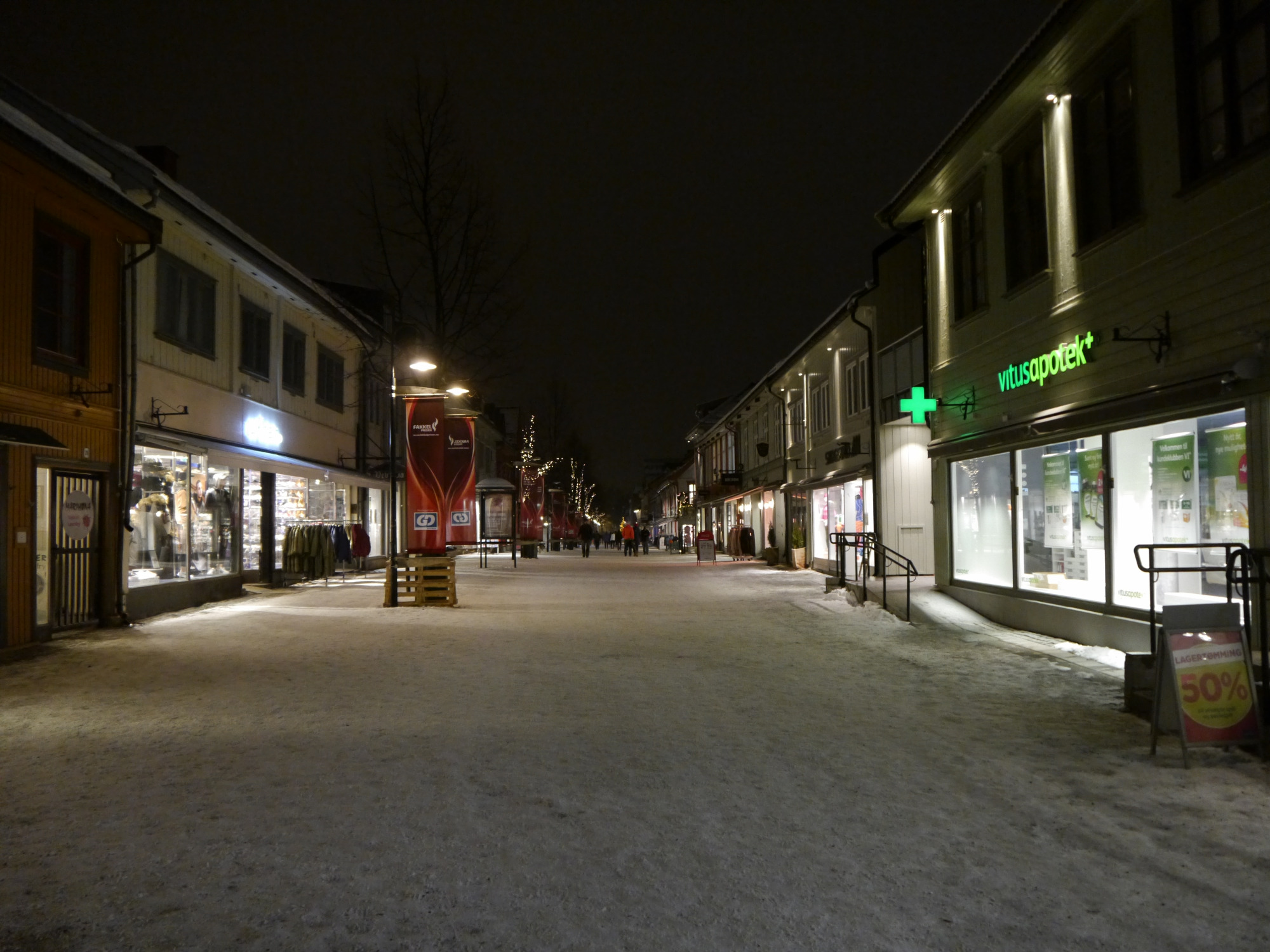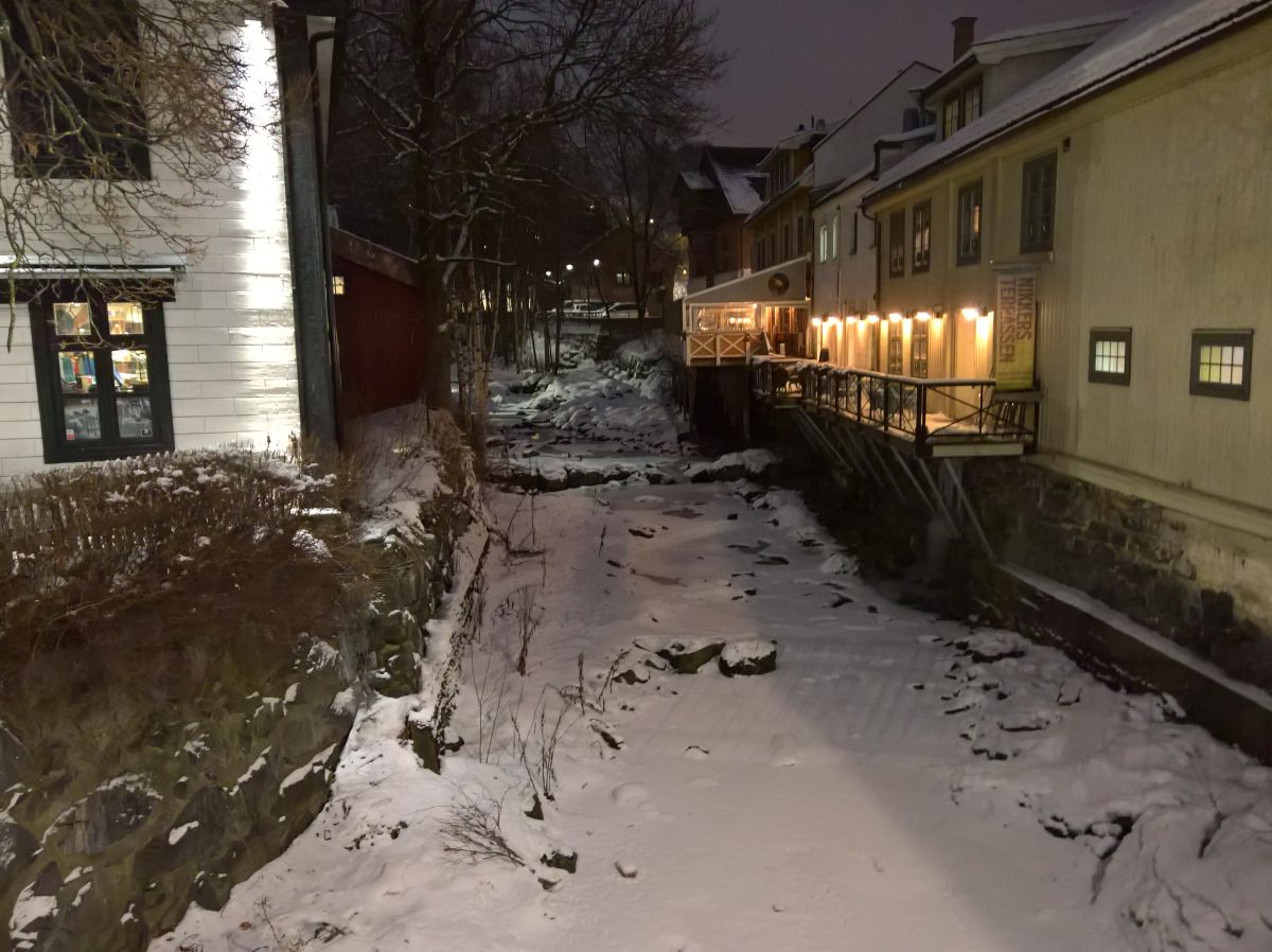 Nachdem wir die Brücke über den vereisten Bach überquert hatten, begann die Fußgängerzone. Diese ist auch öfter in der Fernsehserie Lilyhammer zu sehen, die ja unter anderem dazu beigetragen hat, dass wir hier überhaupt gelandet sind.
