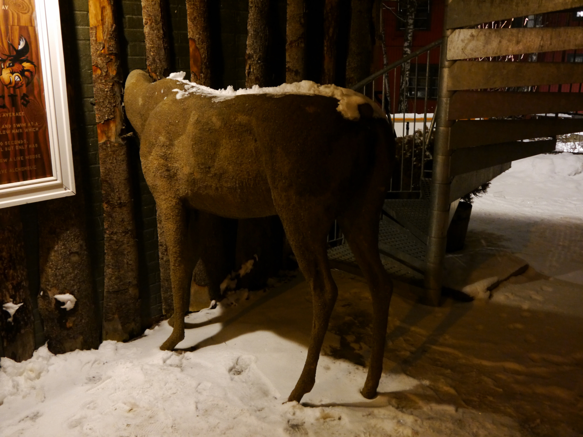 Gegenüber steckt übrigens ein Elch den Kopf in die Wand.
