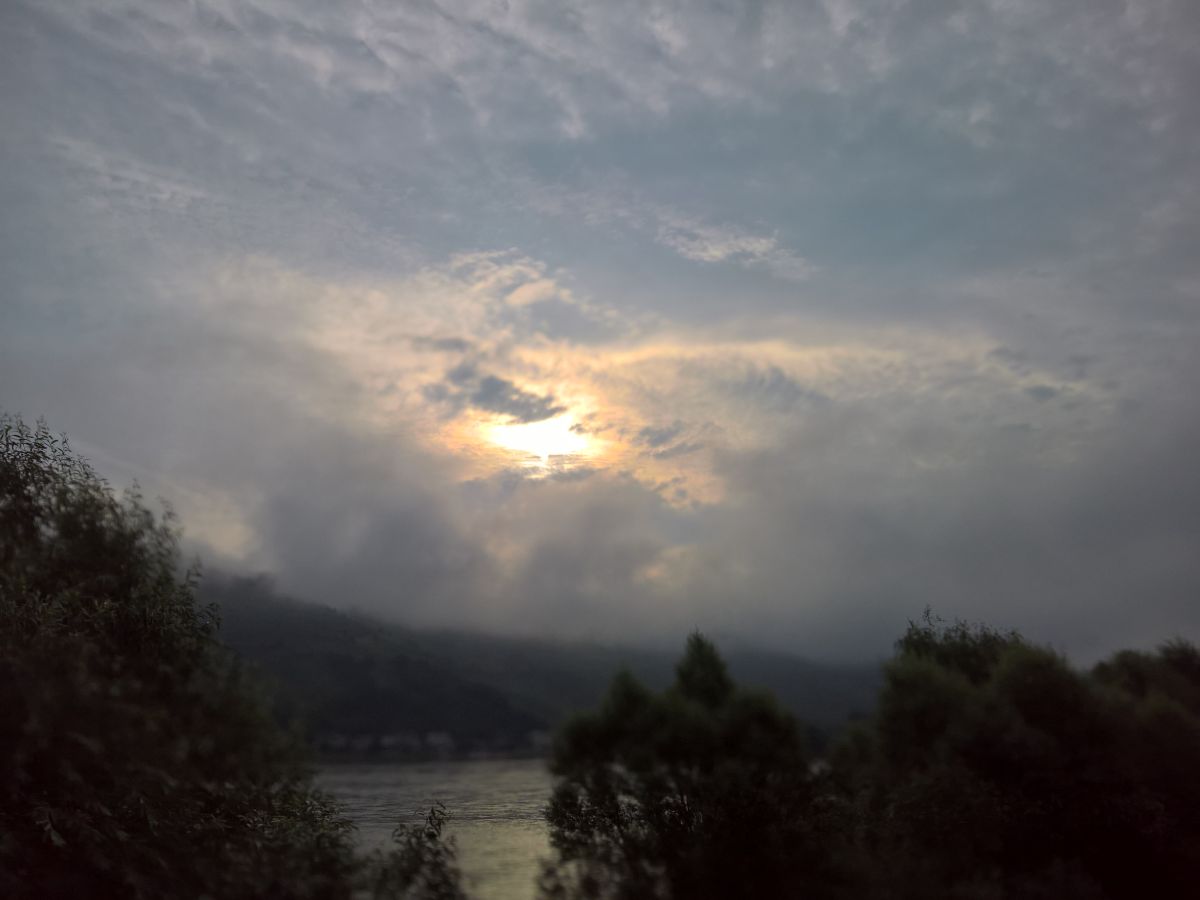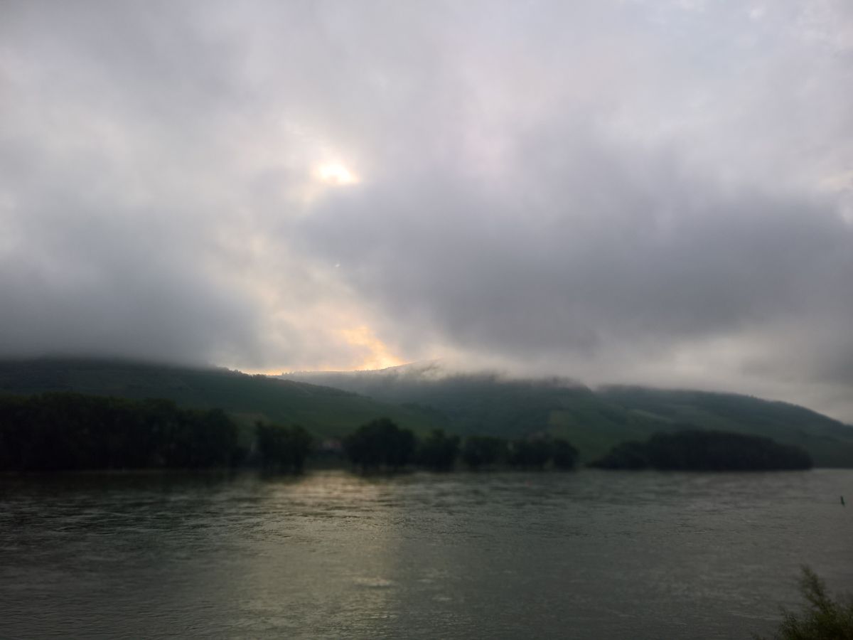 Am Rhein hingen die Wolken ziemlich tief. Und die Sonne hatte Mühe, sich durchzukämpfen.
