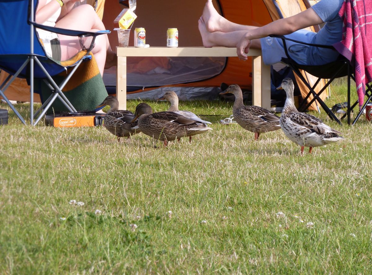 Wie dem auch sei, wir aßen erst einmal etwas, was eine Gruppe Enten auf den Plan rief, die zunächst unsere Nachbarn gegenüber besuchten. Nein, wie niedlich!