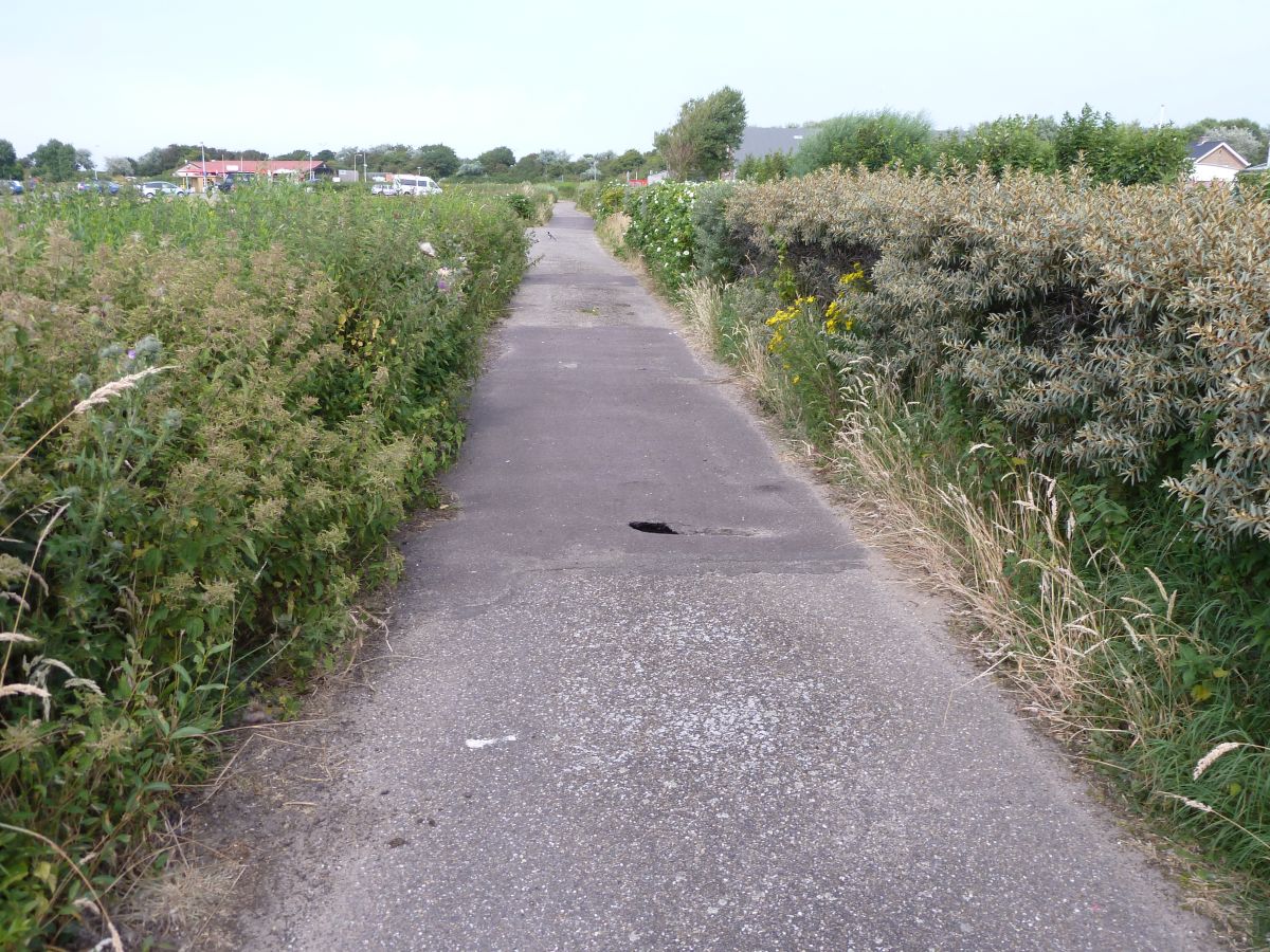 Aber da wollte ich nicht entlang fahren. Mitten auf dem Weg war ein Loch in der Fahrbahn! Wir kehrten um und fuhren über den Parkplatz, von dem wir kamen, zurück. Der Weg wäre vermutlich eh falsch gewesen und nach ein wenig hin und her und rätseln hatten wir den richtigen Weg gefunden.