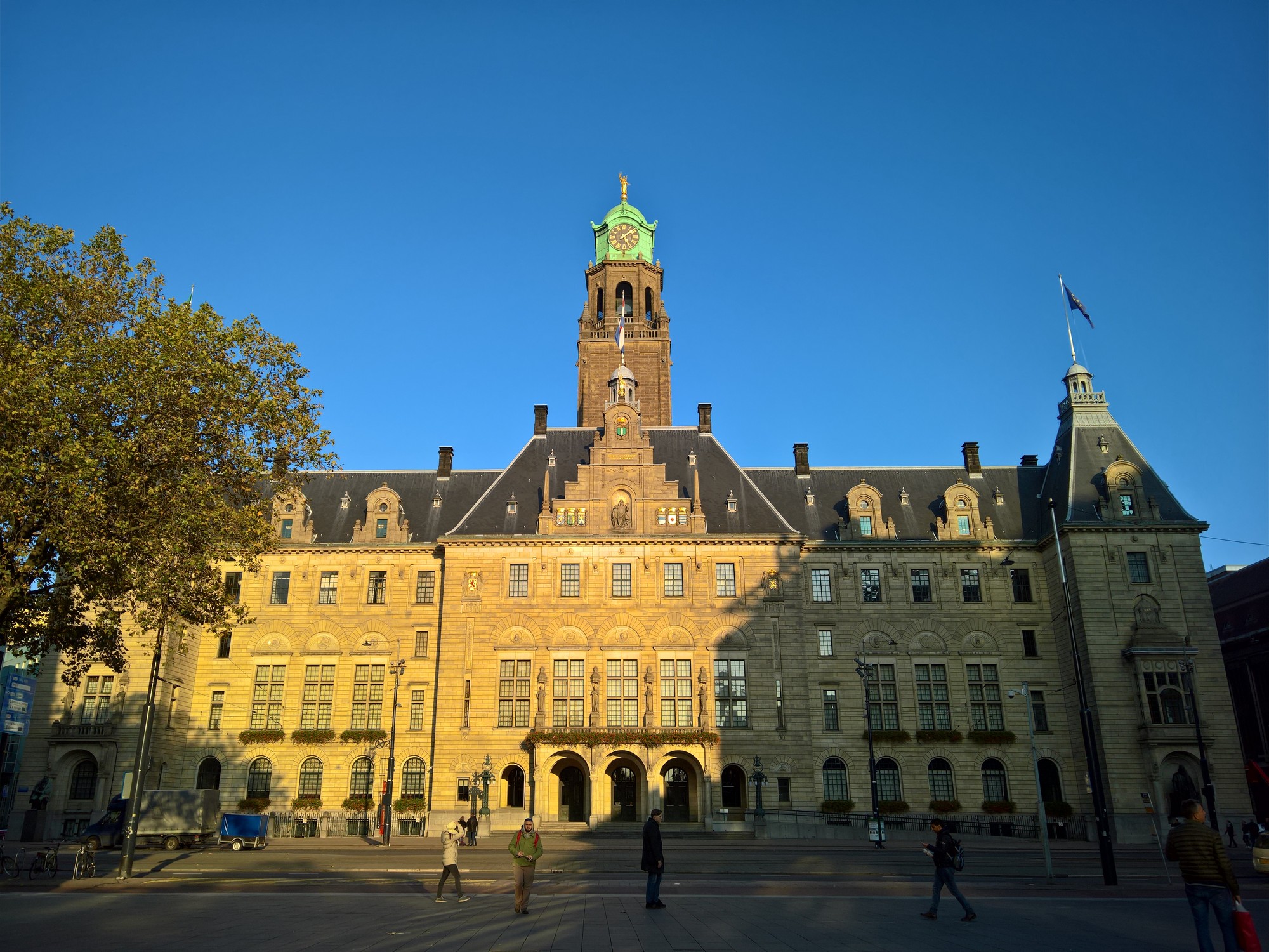 Der letzte Prachtbau auf unserem Weg zum Bahnhof ist das Rathaus von Rotterdam. Auch dieses hat den Krieg überstanden und ist heute denkmalgeschützt.