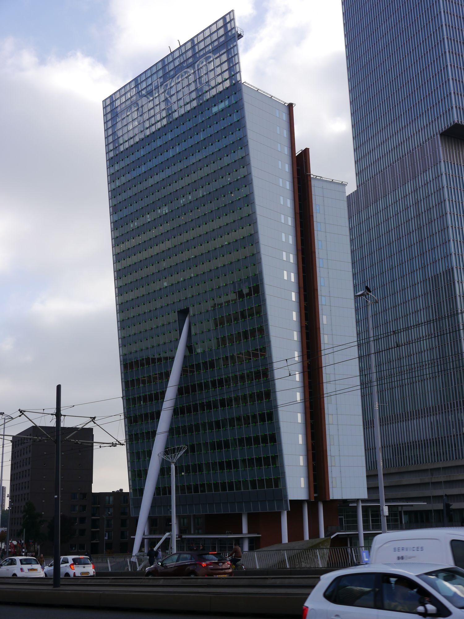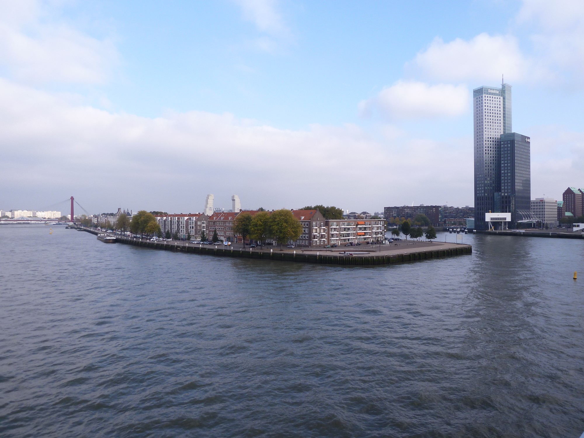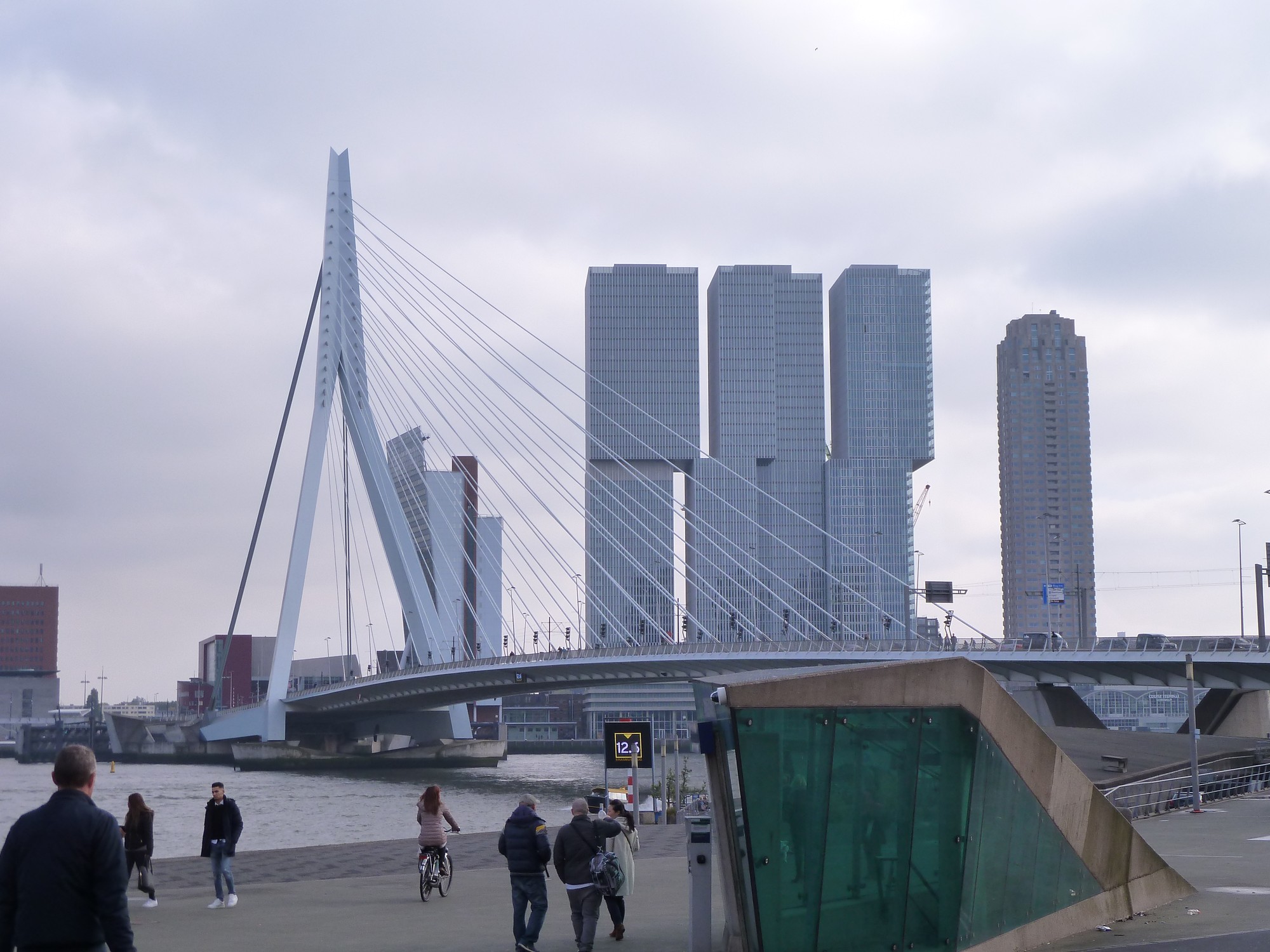 Dann geht es weiter zur Erasmusbrücke, hier im Bild mit dem Gebäudekomplex De Rotterdam, dem derzeit fünfthöchsten Gebäude Rotterdams.