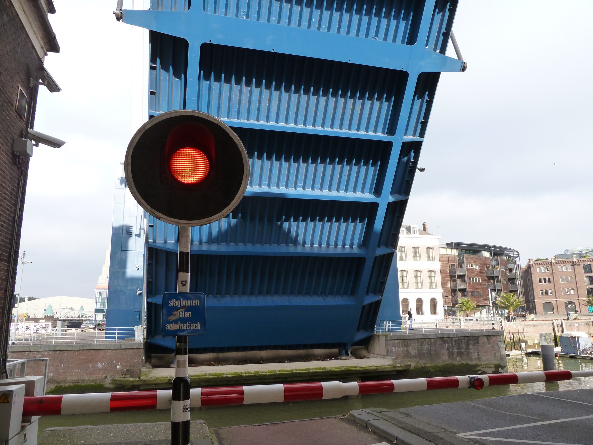 Auf der anderen Seite der Maas laufen wir am Fluss entlang, unter anderem auch über die Spoorweghavenbrug und die Binnenhavenbrug, eine Klappbrücke die über die Einfahrt zur City Marina führt, und die gerade oben ist, als wir dort kommen