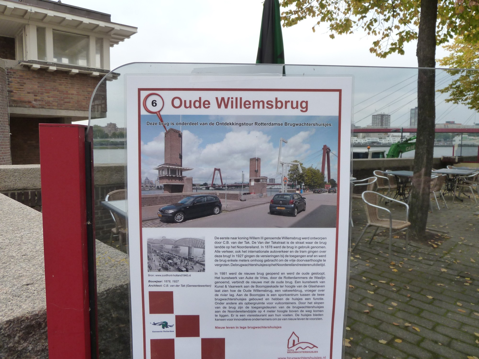 Als nächstes besichtigen wir im Vorbeigehen Brücken, die nicht mehr da sind. Das wäre zum einen die alte Willemseisenbahnbrücke, die zu der oben gezeigten Hebebrücke De Hef gehörte, und die alte Willemsbrücke. Die Eisenbahnbrücke ist durch einen Tunnel und die Willemsbrücke durch eine neue Brücke ersetzt worden.