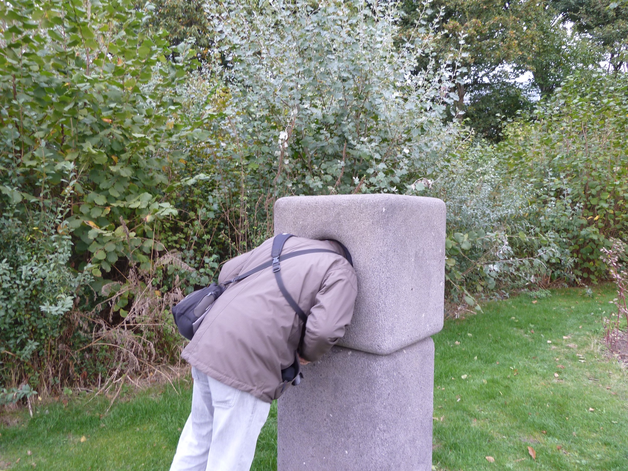 Nicht den Kopf in den Sand stecken, ein Summ-Stein tut’s auch! Man soll den Kopf reinstecken und summen und seinen Klang finden. Was der Mann da reingesummt, ist nicht überliefert.