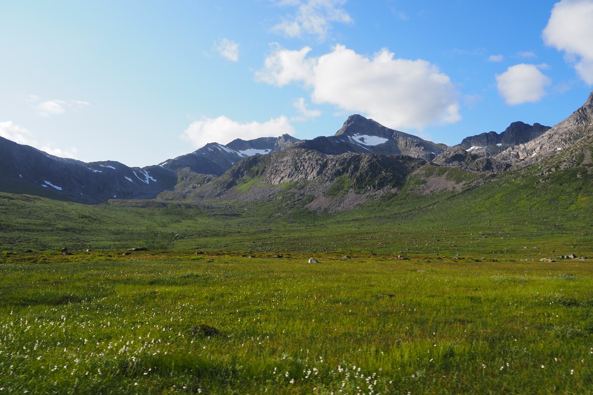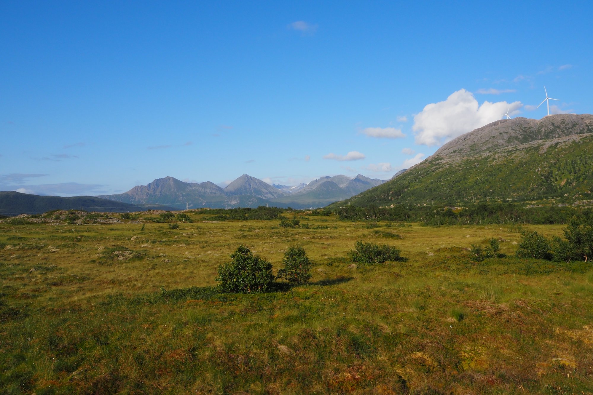 Am Tranøybotn machte wir Mittagspause. Nach dem Essen gingen wir noch ein bisschen spazieren. Von der Straße sah es aus, als würde unser Auto mitten in der Wiese stehen. Aber da war einigermaßen fester Boden und man durfte da stehen.