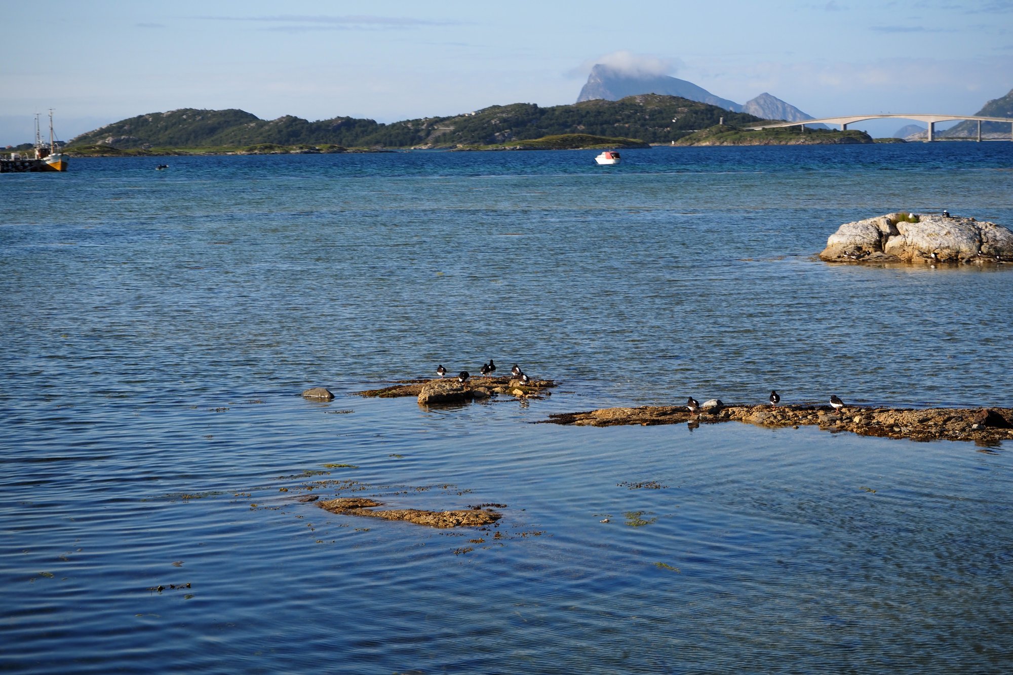 Aus dem Fenster im Camper hatten wir einen direkten Blick auf Bleiksøya, ein Natur- und Vogelschutz-Eiland mit seinem 160 Meter hohen Felsen.