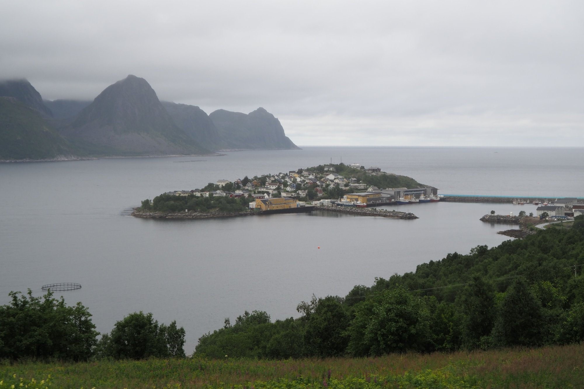 Wir fuhren nach Husøy. Das ist ein ziemlich kleine Insel im Øyfjord. Ich hatte gelesen, dass die Insel in den 1950er Jahren von den Menschen aus Øyfjordvær besiedelt wurde, weil ihre Siedlung durch Erdrutsche gefährdet war. Die Insel ist kleiner als die Helgoländer Düne und dichter besiedelt als Hamburg.