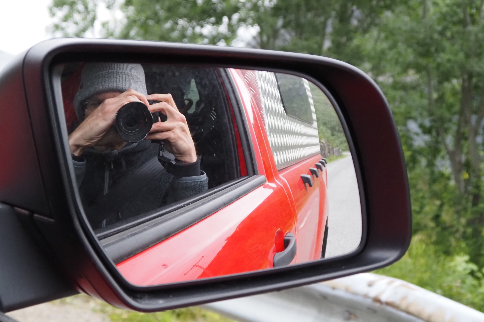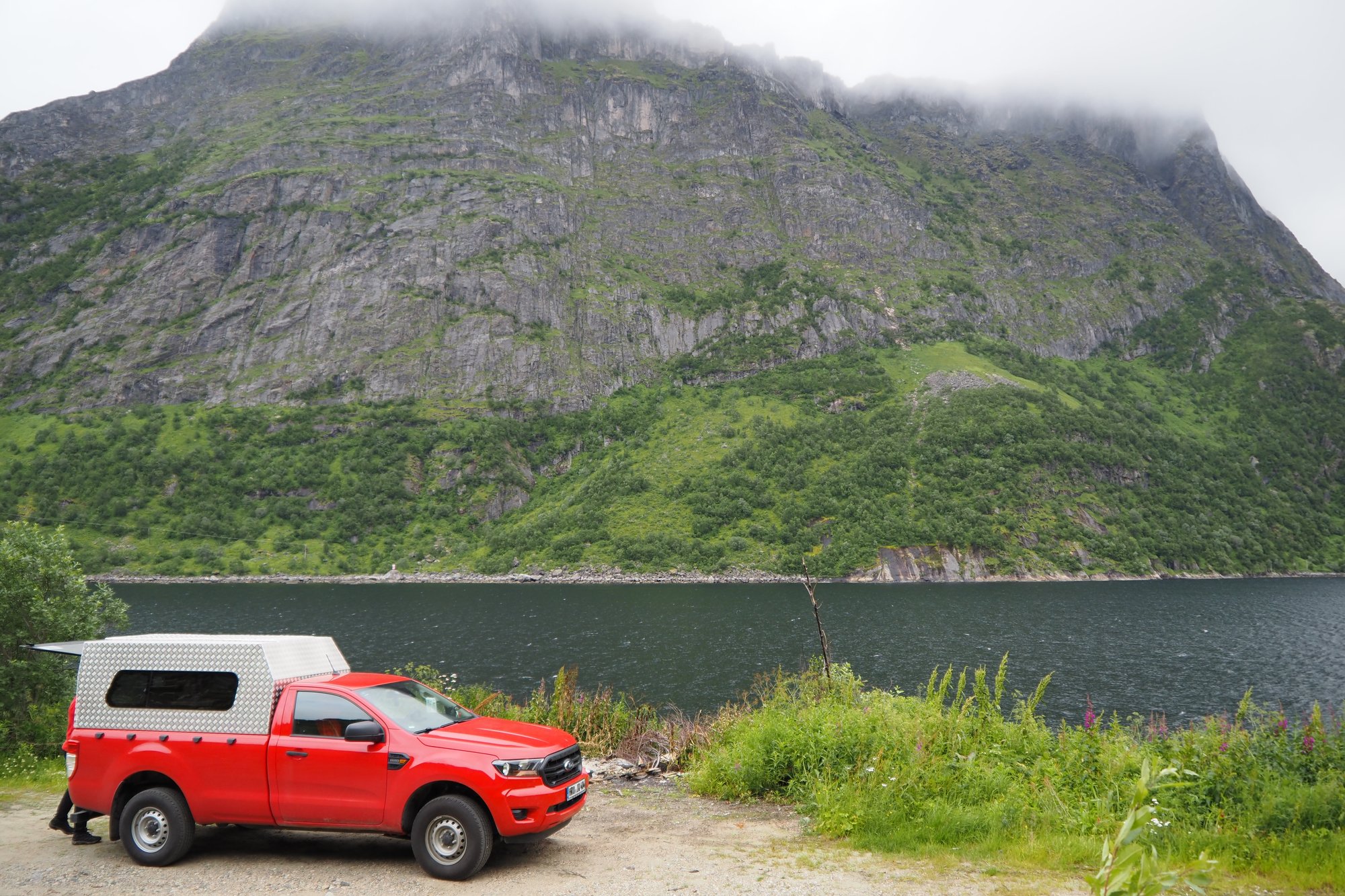 In Sandvika hielten wir noch einmal zum Knipsen. Schlaglöcher auf den Straßen und enge Kurven hatten die Einrichtung im Camper ein wenig durcheinander gebracht. Wir stellten Optimierungsbedarf fest, um unseren Camper offroad-tauglicher zu machen. Wir würden noch einiges zu tun haben, wenn wir wieder zuhause waren.