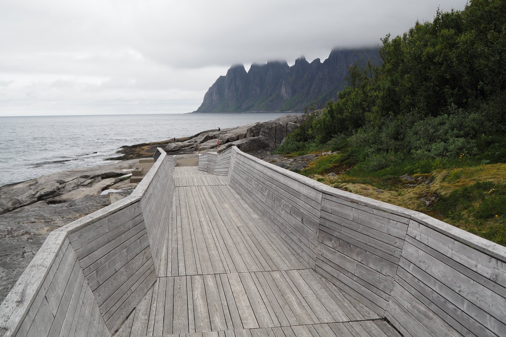 An der Bergsbotn-Aussichtsplattform legten wir einen Stopp ein. Die Plattform war witzig gestaltet, die Holzwege waren geschwungen.