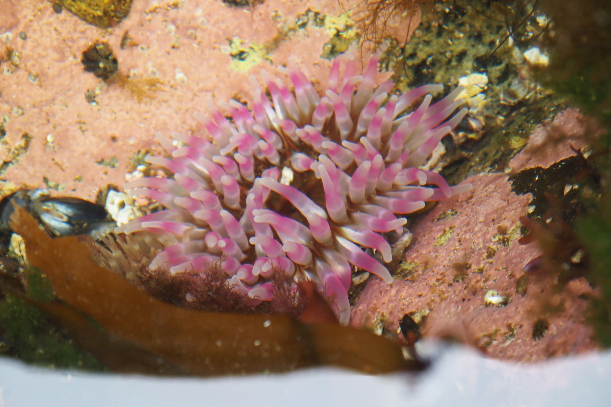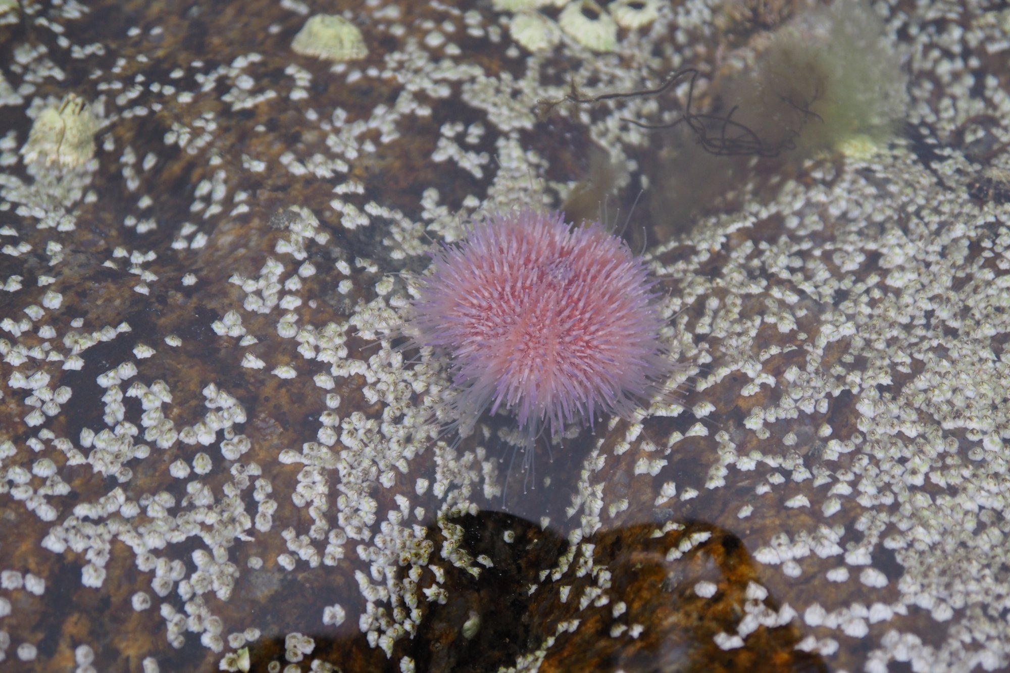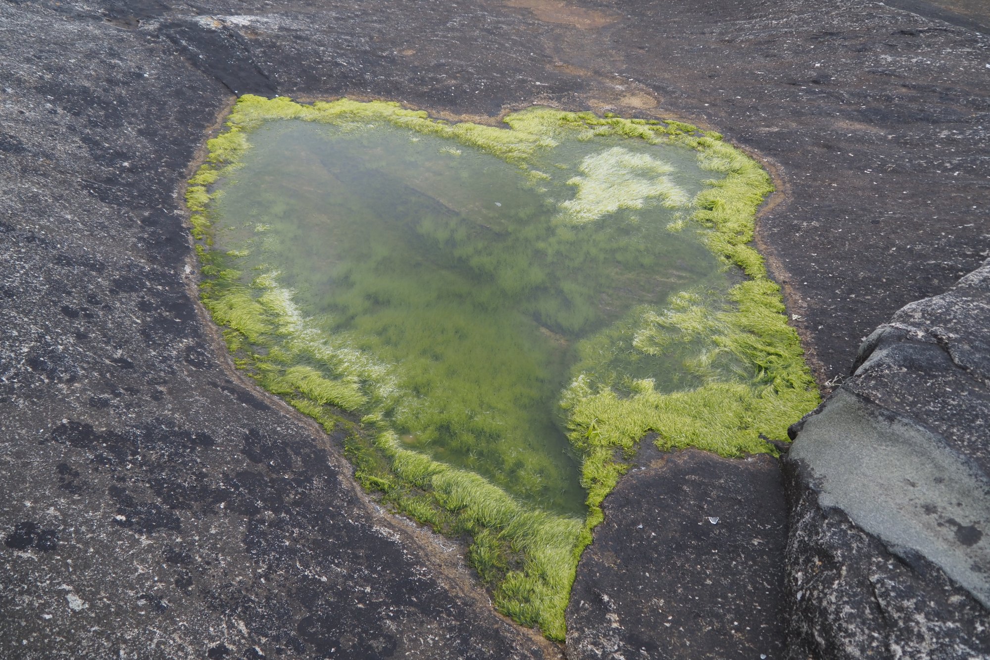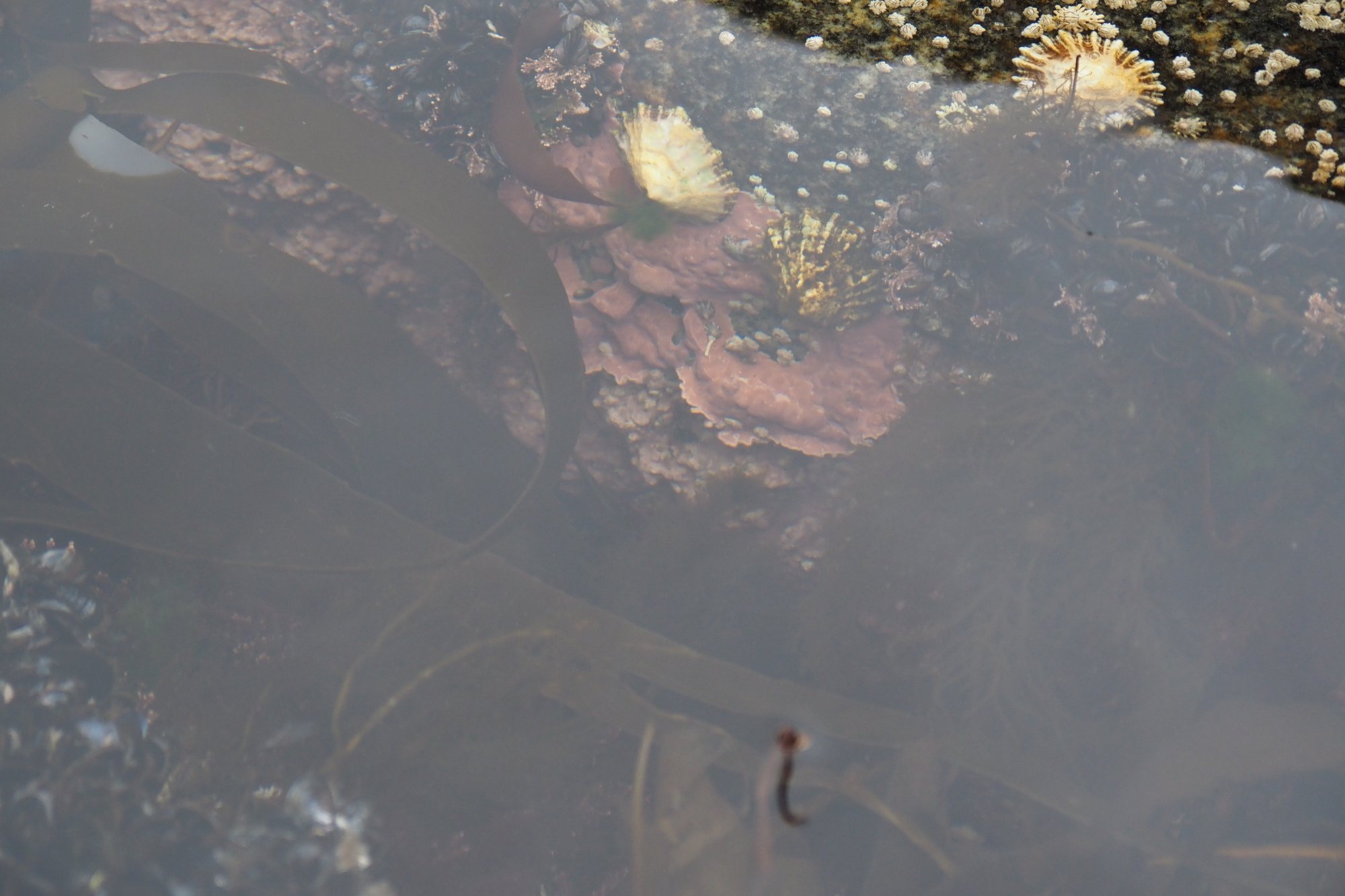 Zunächst dachten wir, wir laufen da ein wenig auf den von der Witterung teiweise recht glatt geschliffenen Felsen herum und dann fahren wir weiter. Aber dann entdeckten wir, dass in den ganzen Steinstufen etliche kleine Tümpel waren, in denen das Leben tobte.