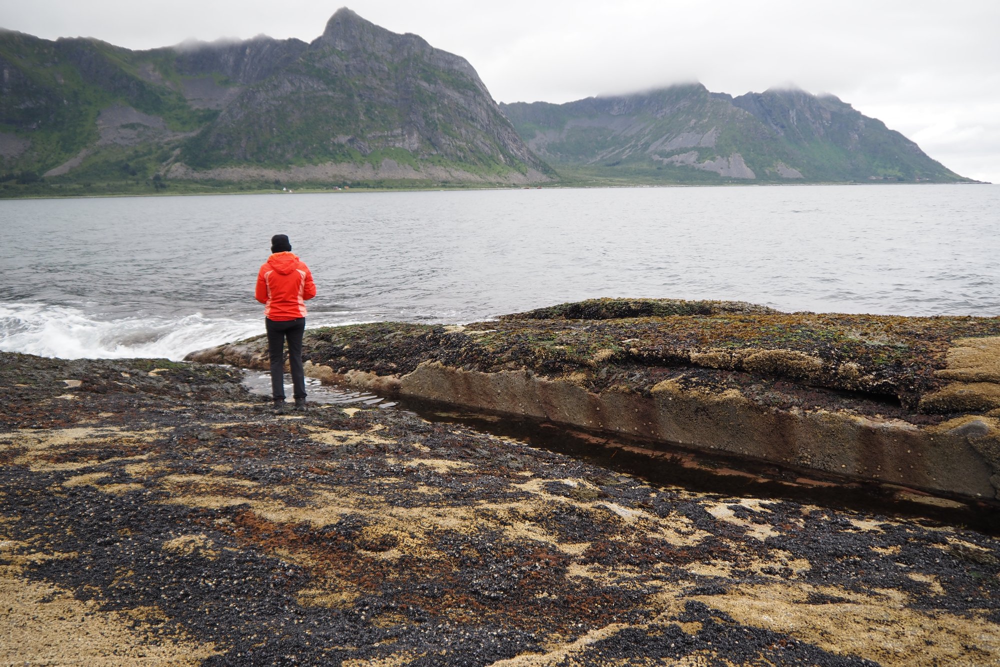 Unser nächster Stopp ist in Ersfjord. Dort gehen wir ein bisschen am Strand spazieren.