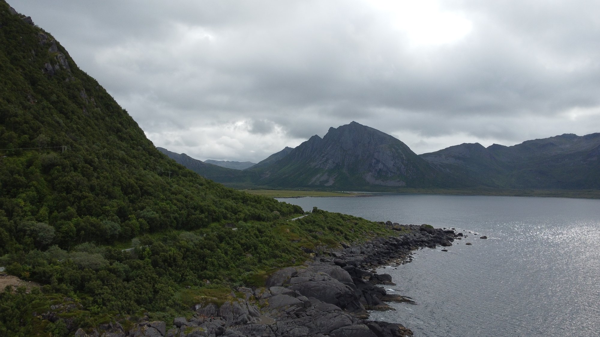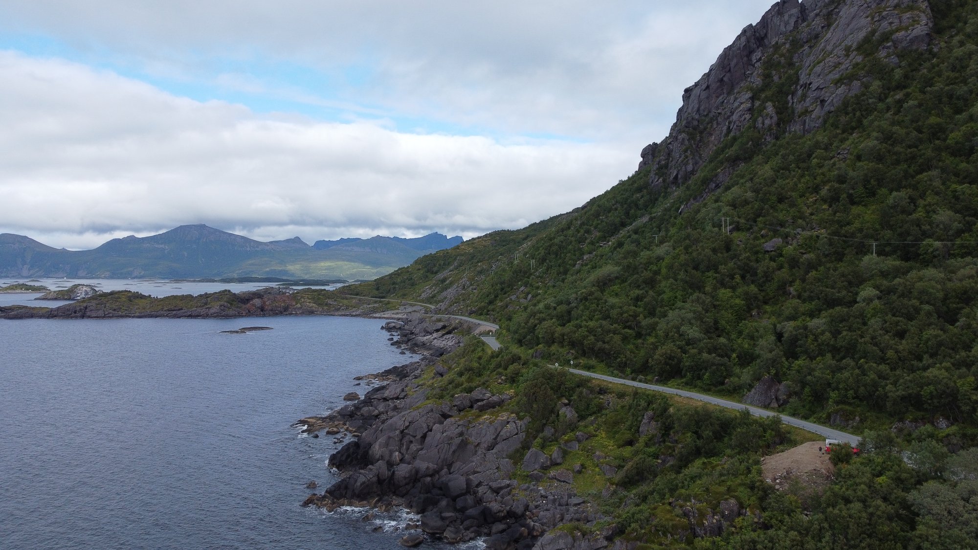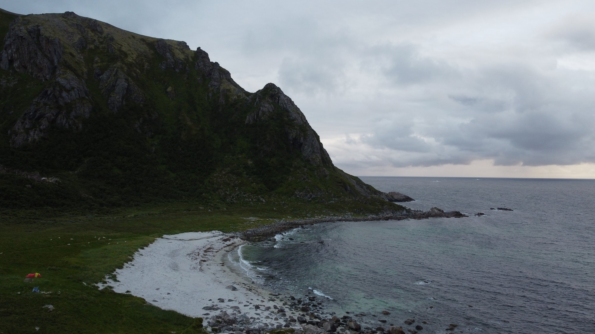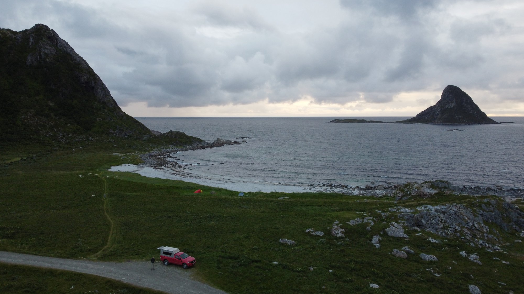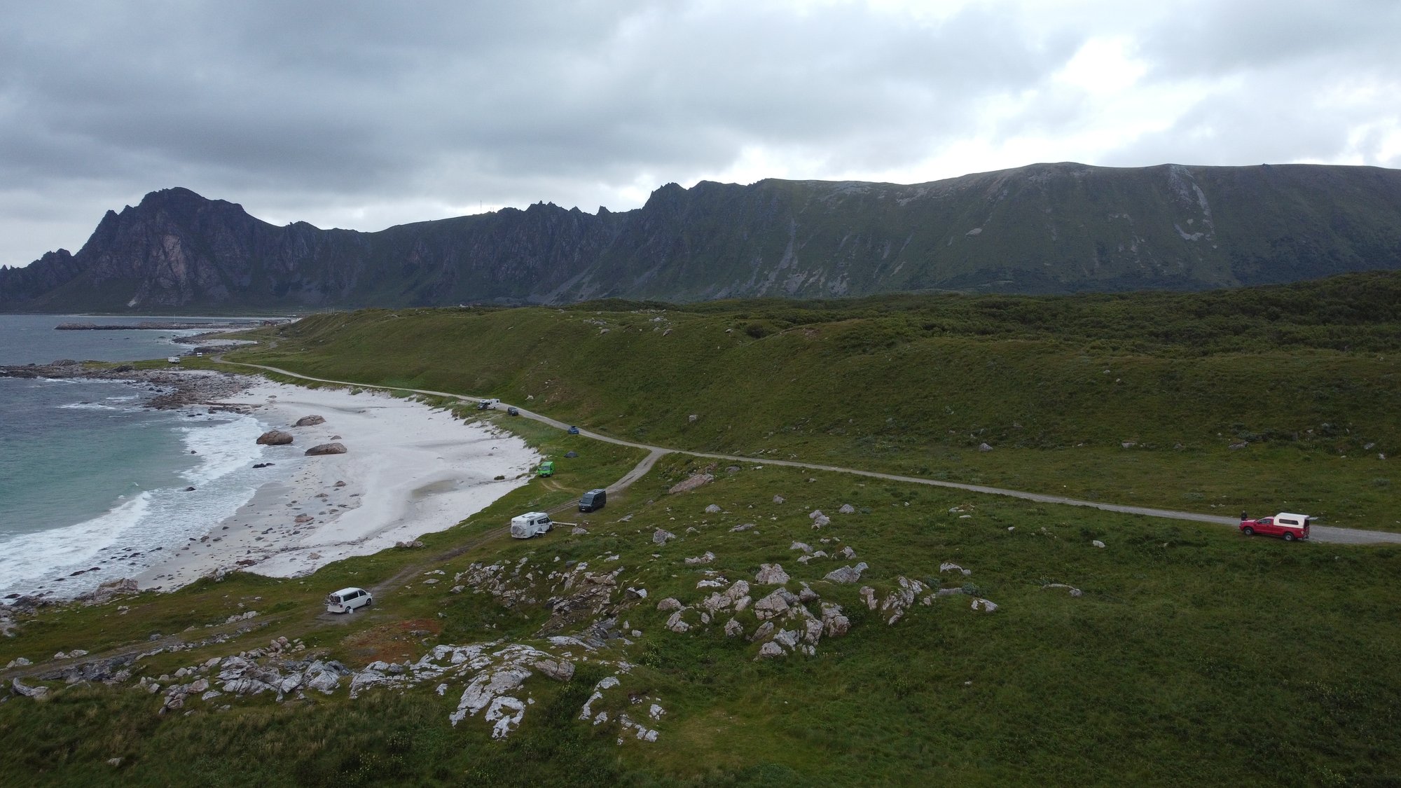 Der Mann packte nochmal die Drohne aus und flog eine Runde und machte ein paar Photos aus der Luft. Tolle weiße Strände haben die da auf Andøya.