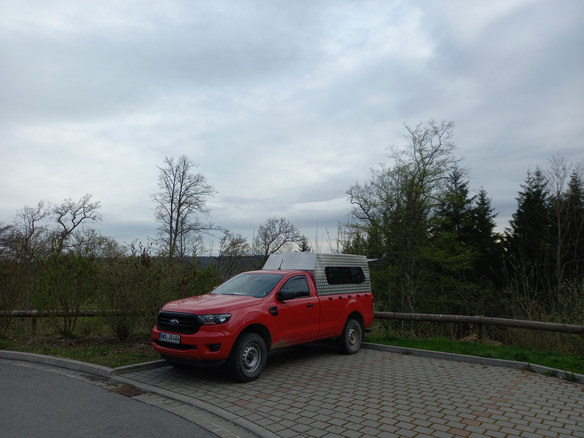 Auch die zuvor überlegte Übernachtung auf dem Parkplatz des Museums kam nicht in Frage. Es war zu ungemütlich und die nächsten bewohnten Häuser waren zu nah. Wir fuhren zum Parkplatz vom Drei-Freistaaten-Stein.