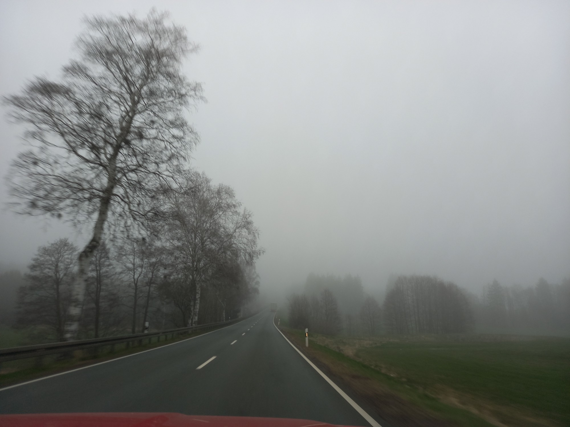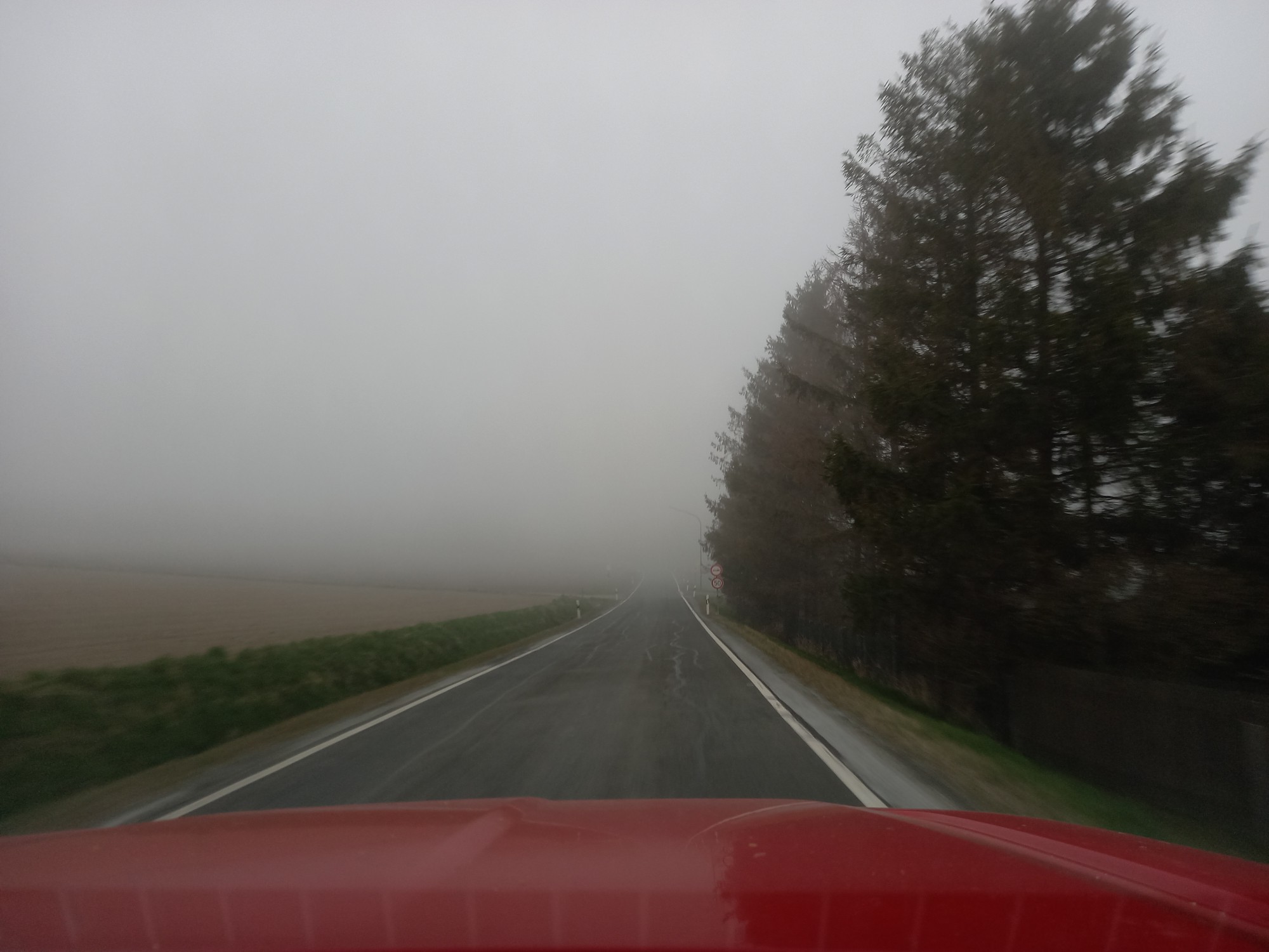 Windräder können sehr laute und sehr unangenehme Geräusche machen. Nun denn, wir waren müde und haben schon schlimmer gestanden, also blieben wir. Als der Nebel sich lichtete, waren die Windräder noch lauter zu hören. Aber irgendwann schlief ich dann trotzdem ein.