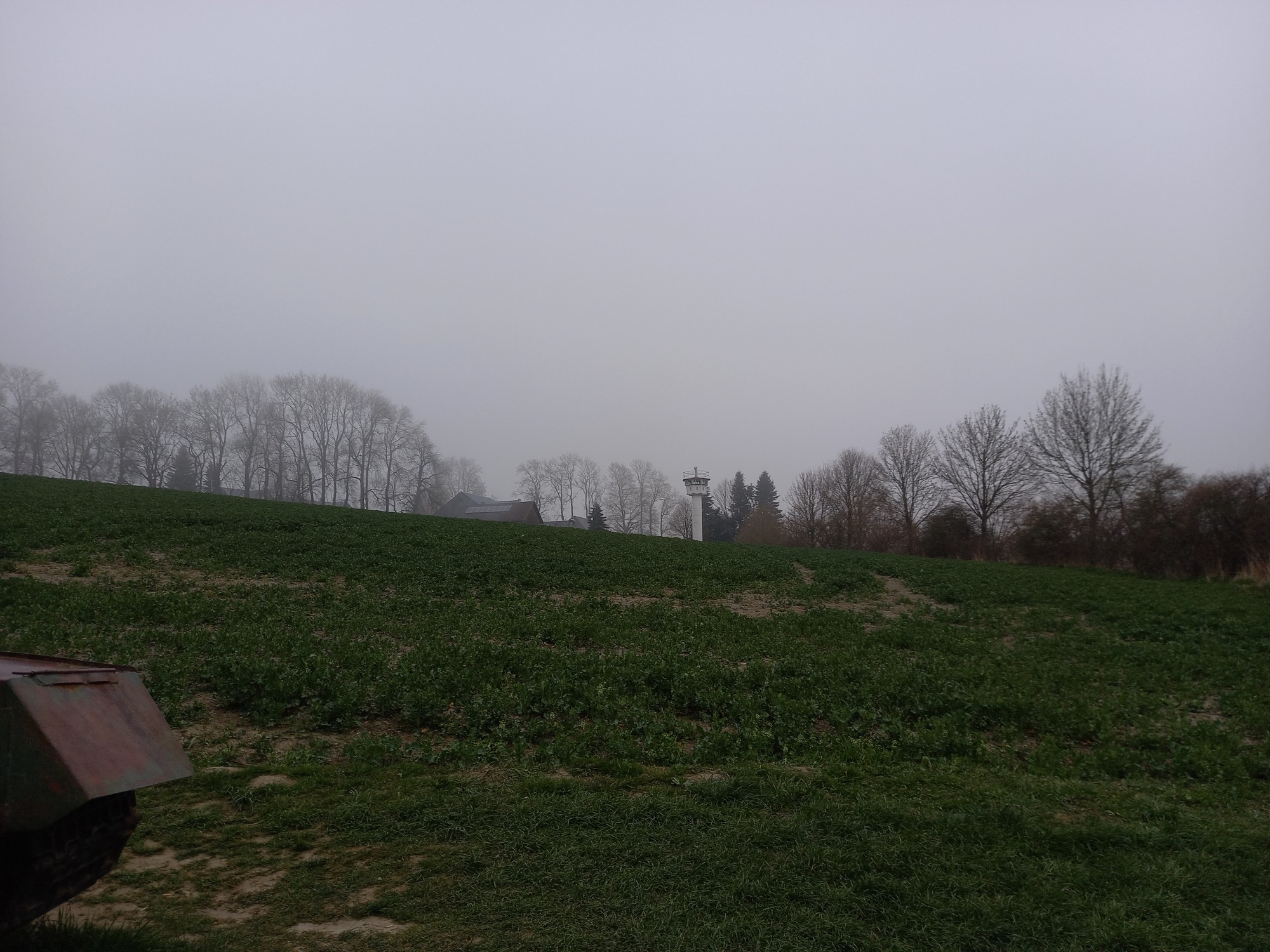 Viel sehen konnten wir während unserer Fahrt dorthin nicht. Das letzte Stück Weg war eine sehr schmale Straße zwischen Feldern. Dort war es so neblig, dass wir kaum erkennen konnten, was neben der Straße war. So merkten wir dann auch erst beim Aussteigen, dass wir mitten in einem Windpark standen.