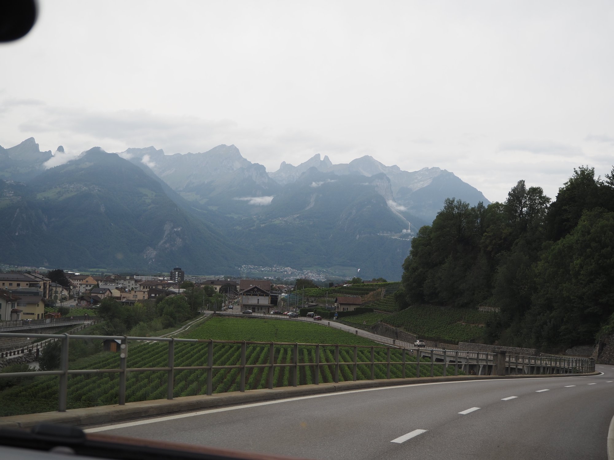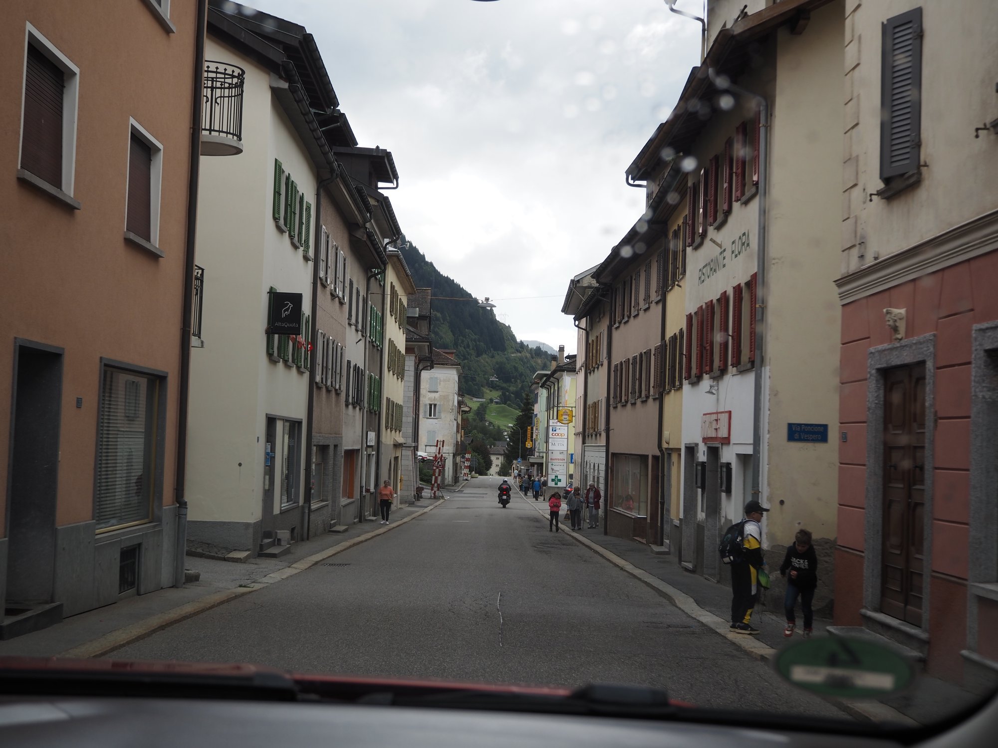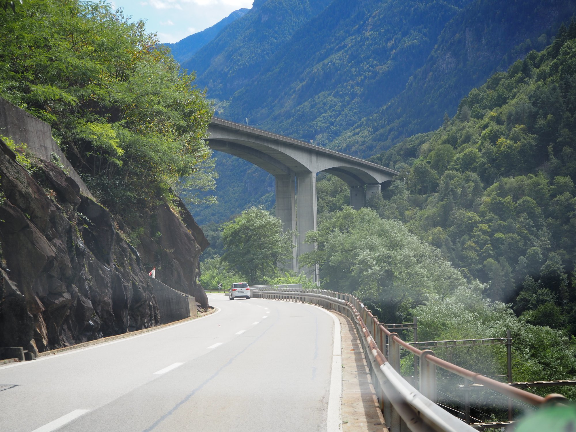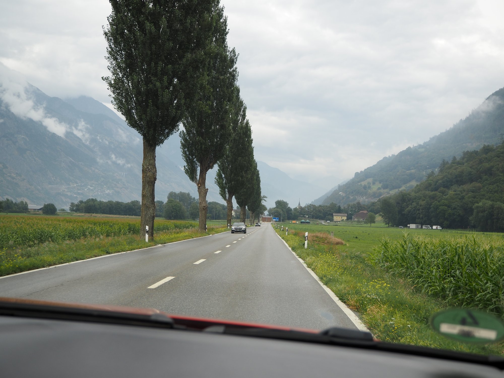 Wir sind durchs Rhonetal und dann erst den Furkapass, dann den Gottardpass und auch noch den San Bernardino gefahren. Und dann waren wir versehentlich auf der Autobahn.