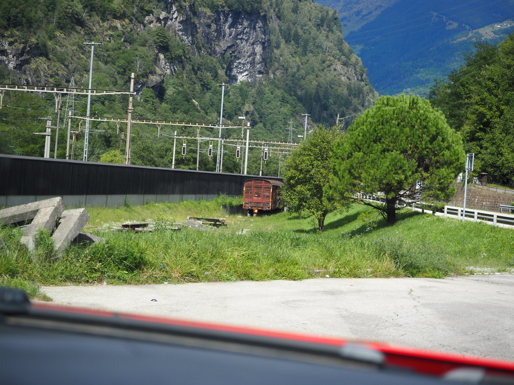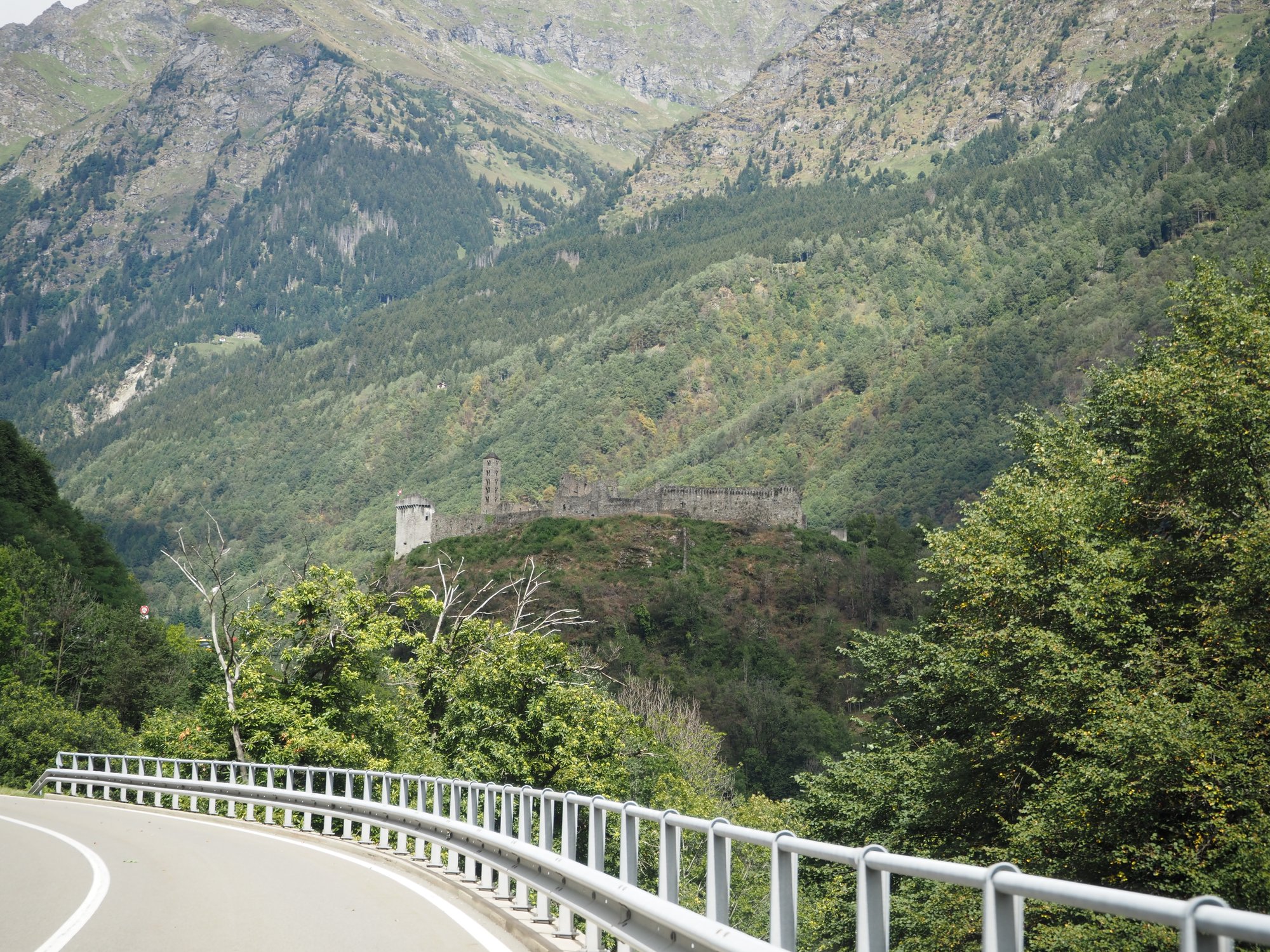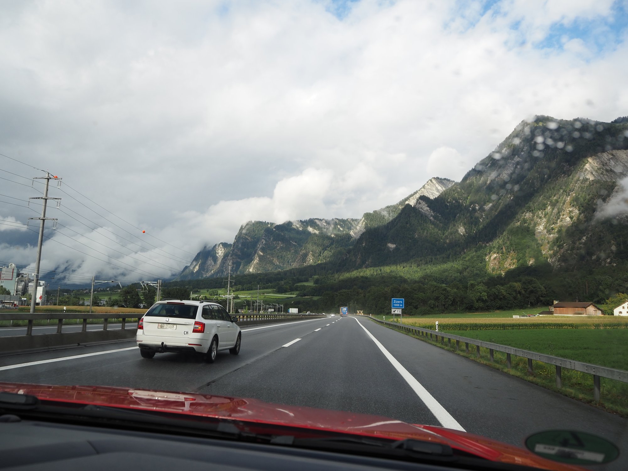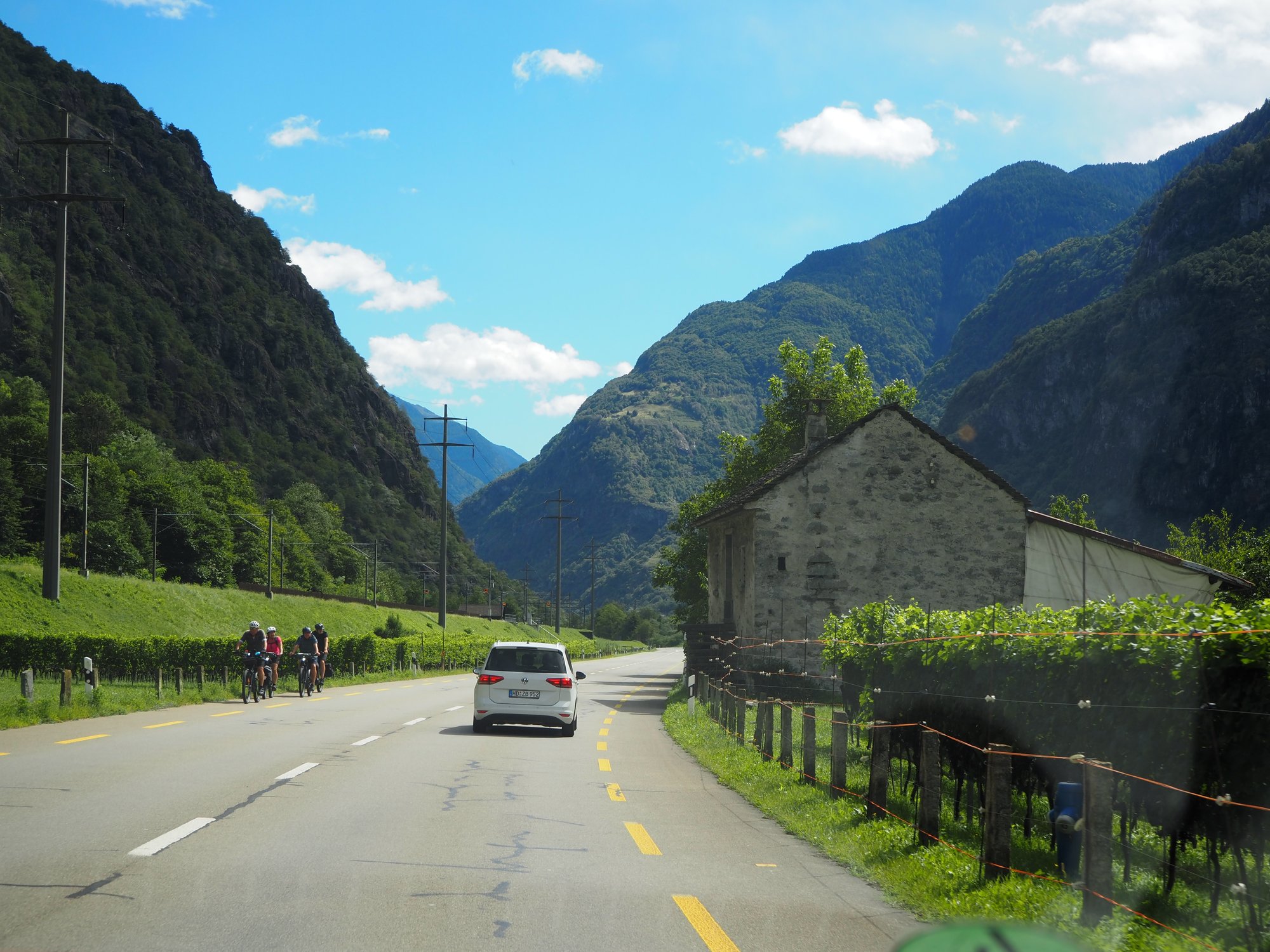 Wir sind durchs Rhonetal und dann erst den Furkapass, dann den Gottardpass und auch noch den San Bernardino gefahren. Und dann waren wir versehentlich auf der Autobahn.