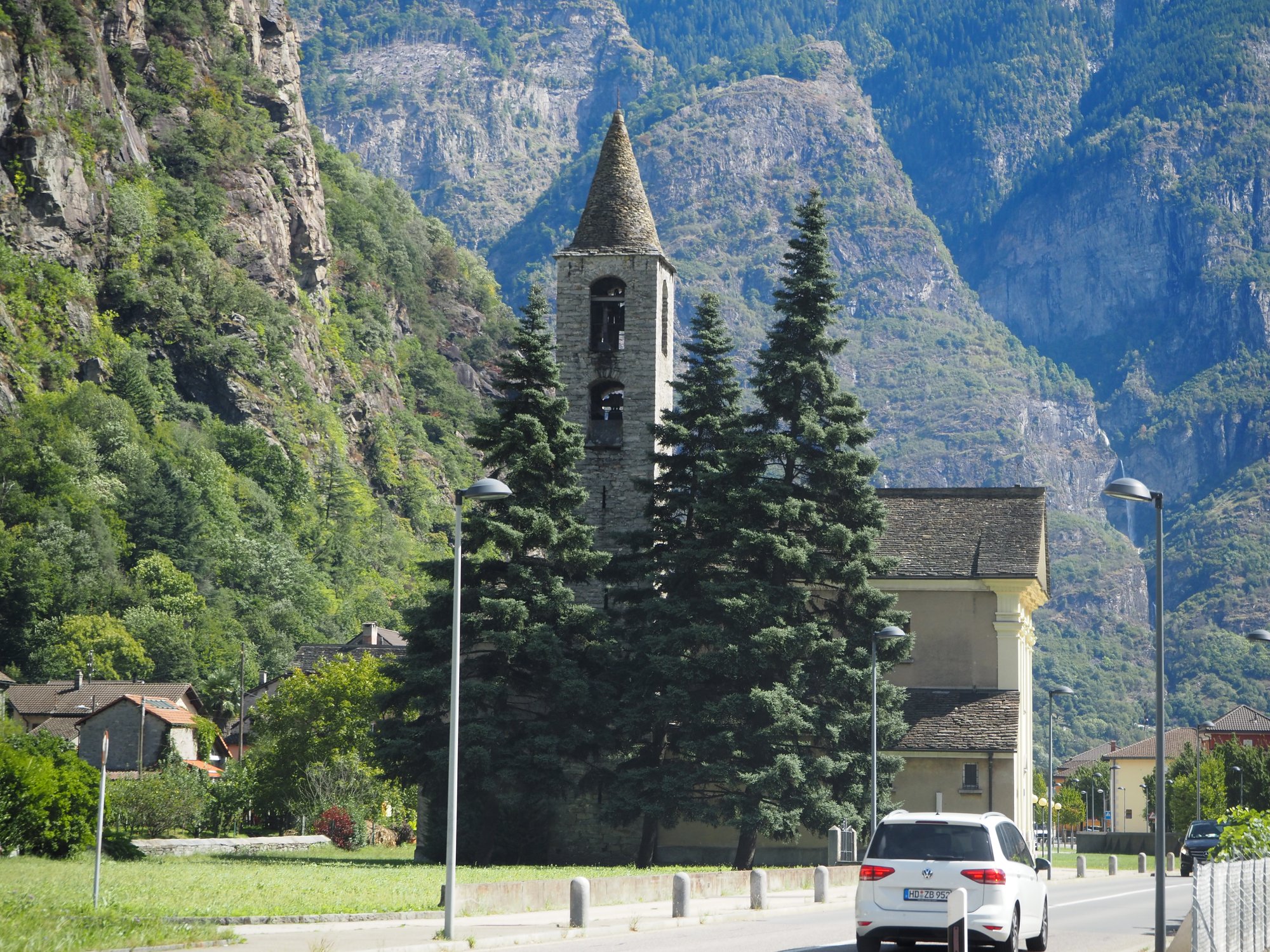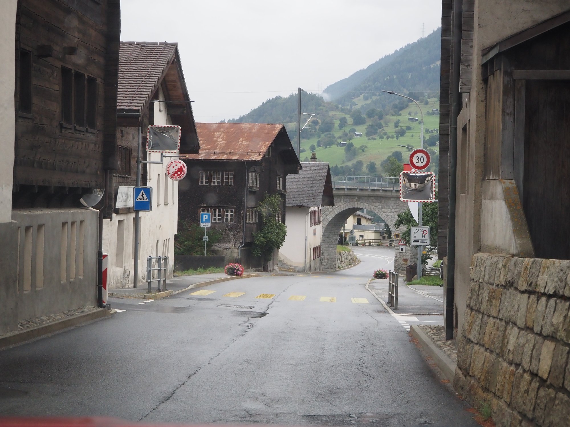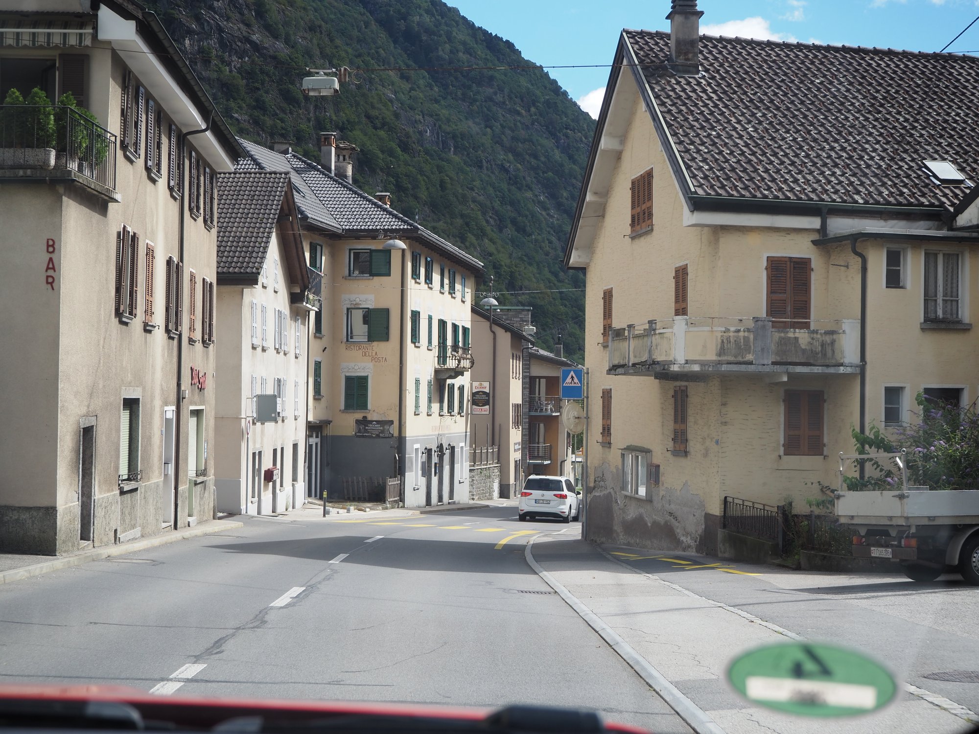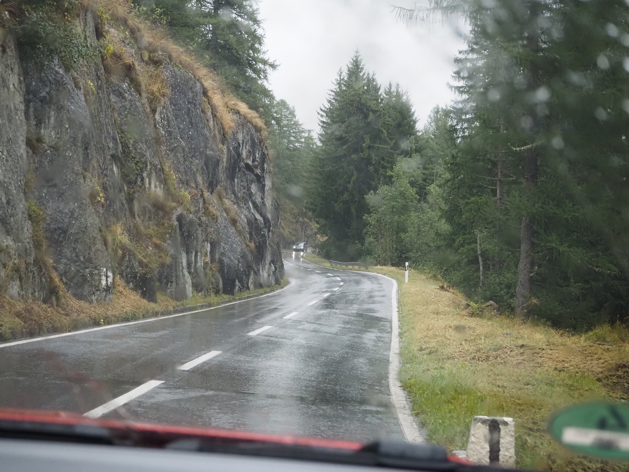 Wir sind durchs Rhonetal und dann erst den Furkapass, dann den Gottardpass und auch noch den San Bernardino gefahren. Und dann waren wir versehentlich auf der Autobahn.