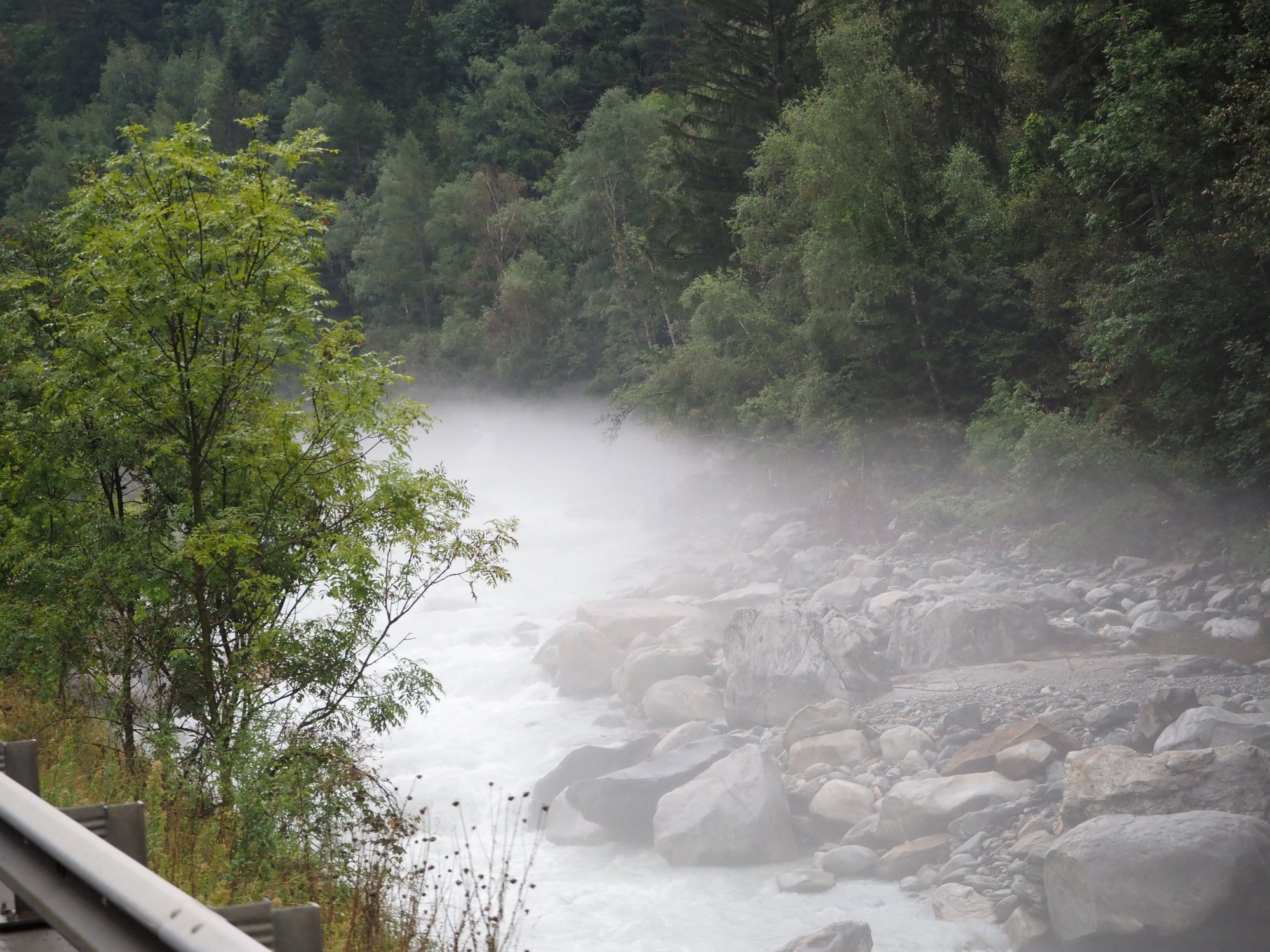 Schon bald legen wir den ersten Stopp ein am Sidelenbach, der im Nebel einfach toll aussieht. Der Mann knipst ein paar Bilder mit dem Smartphone und dann gehts auch schon weiter.