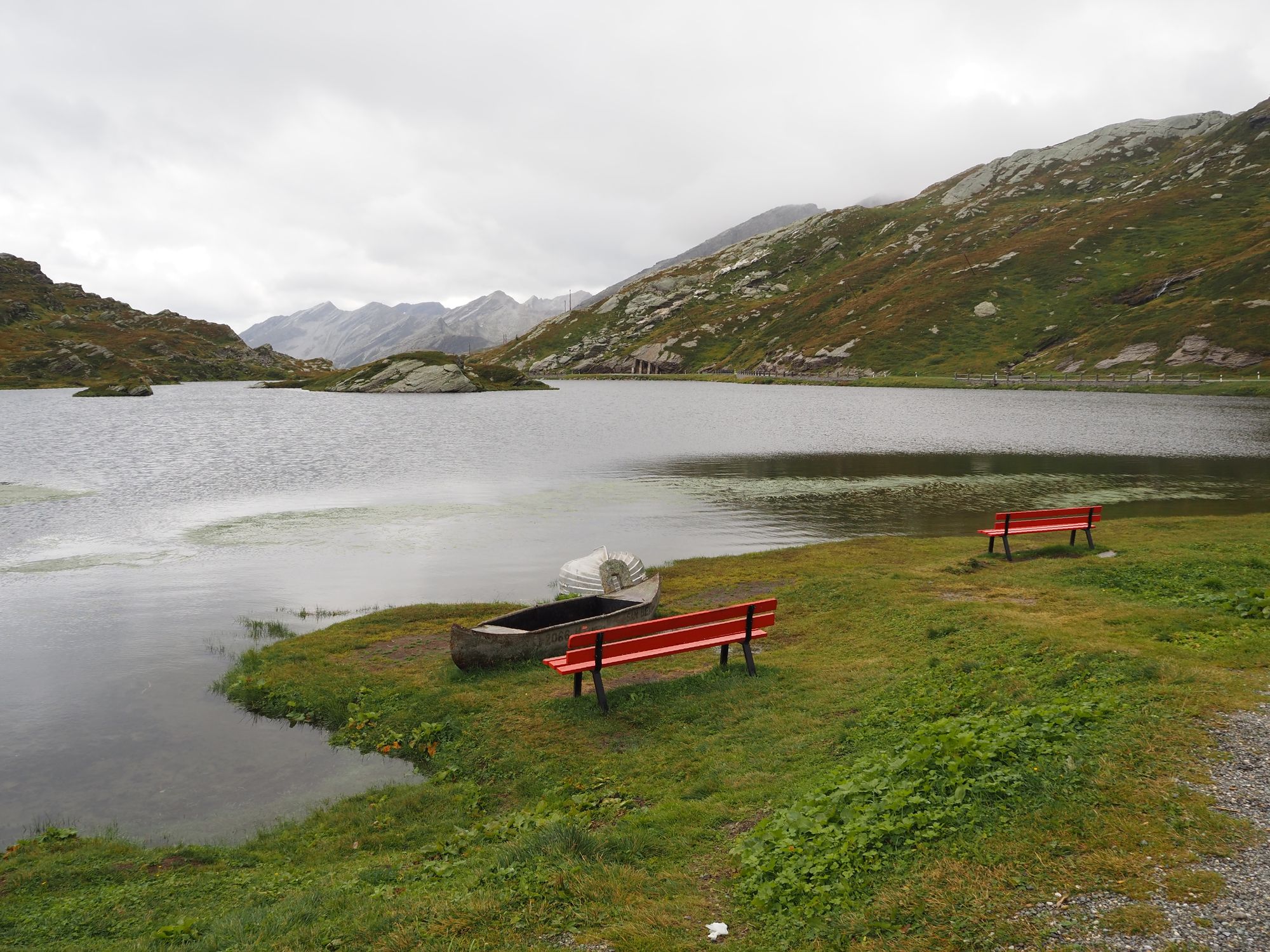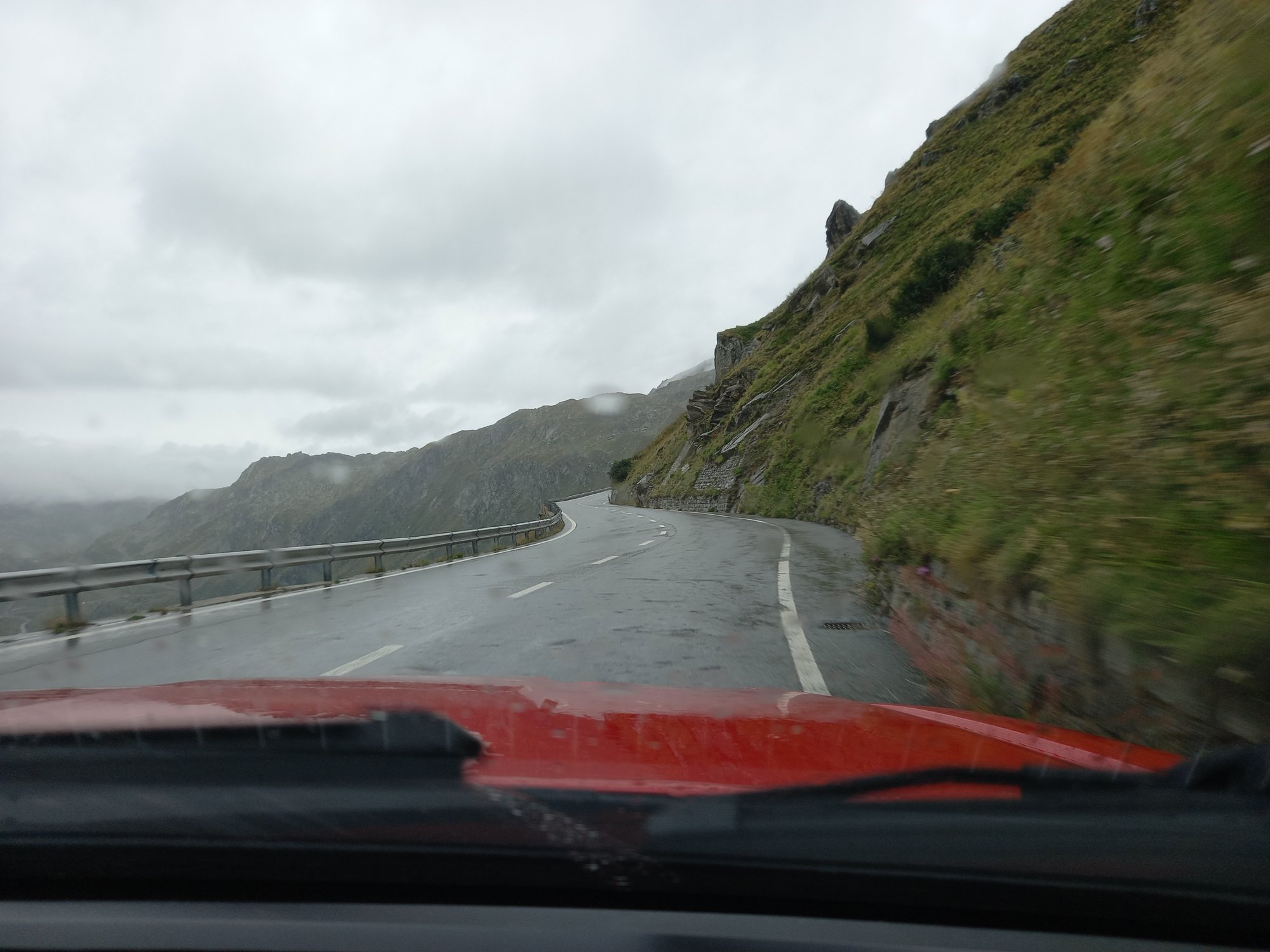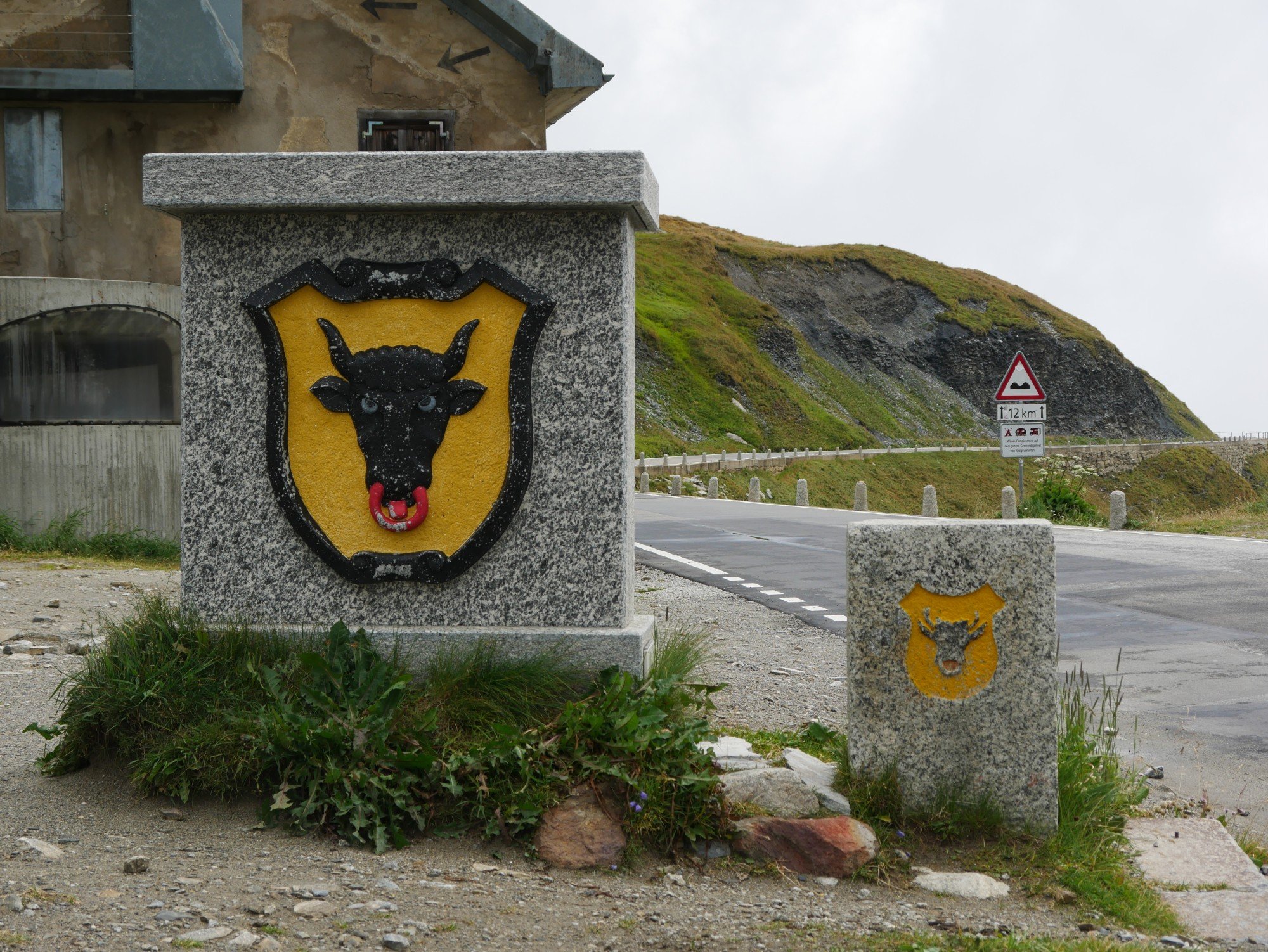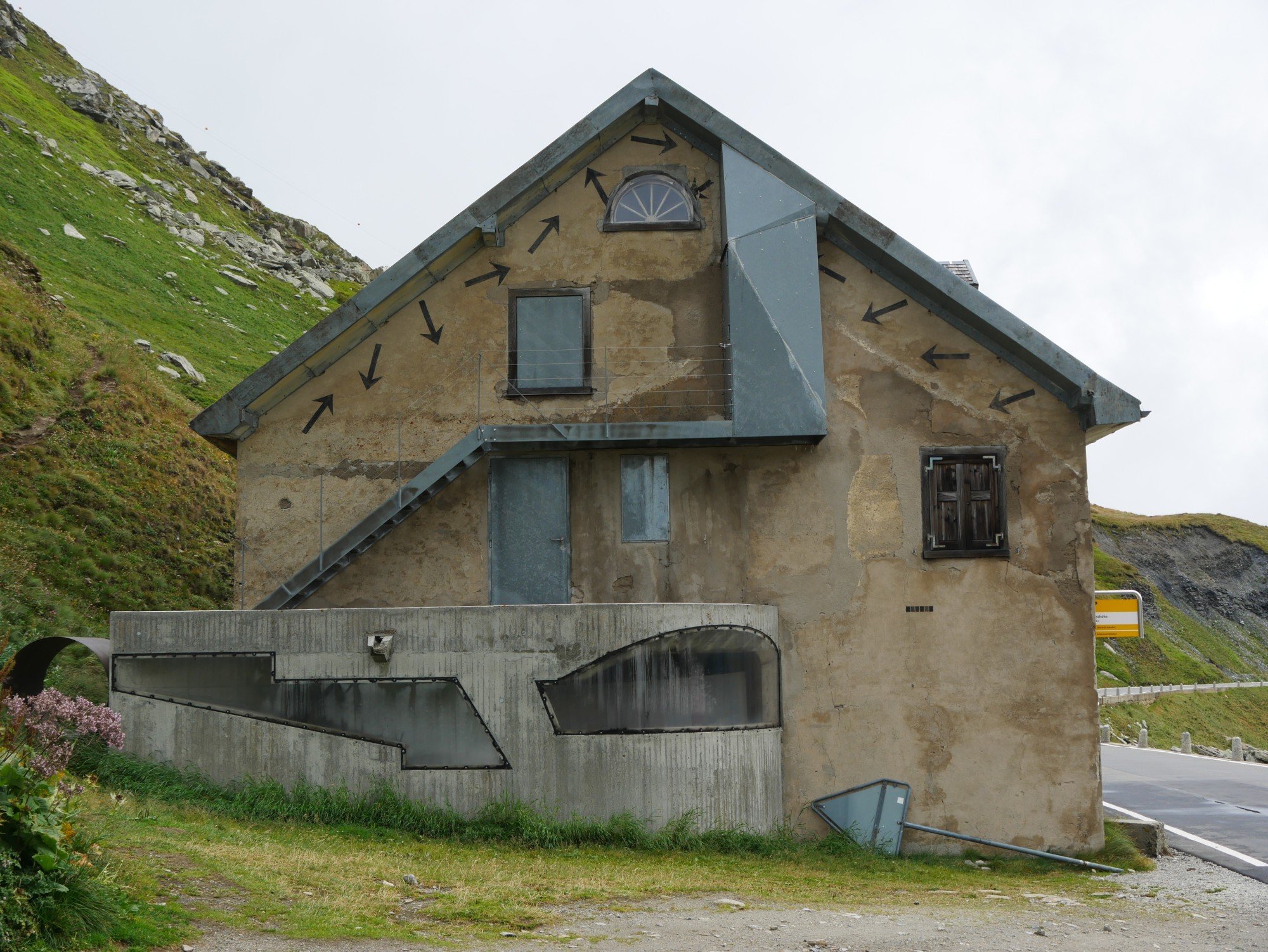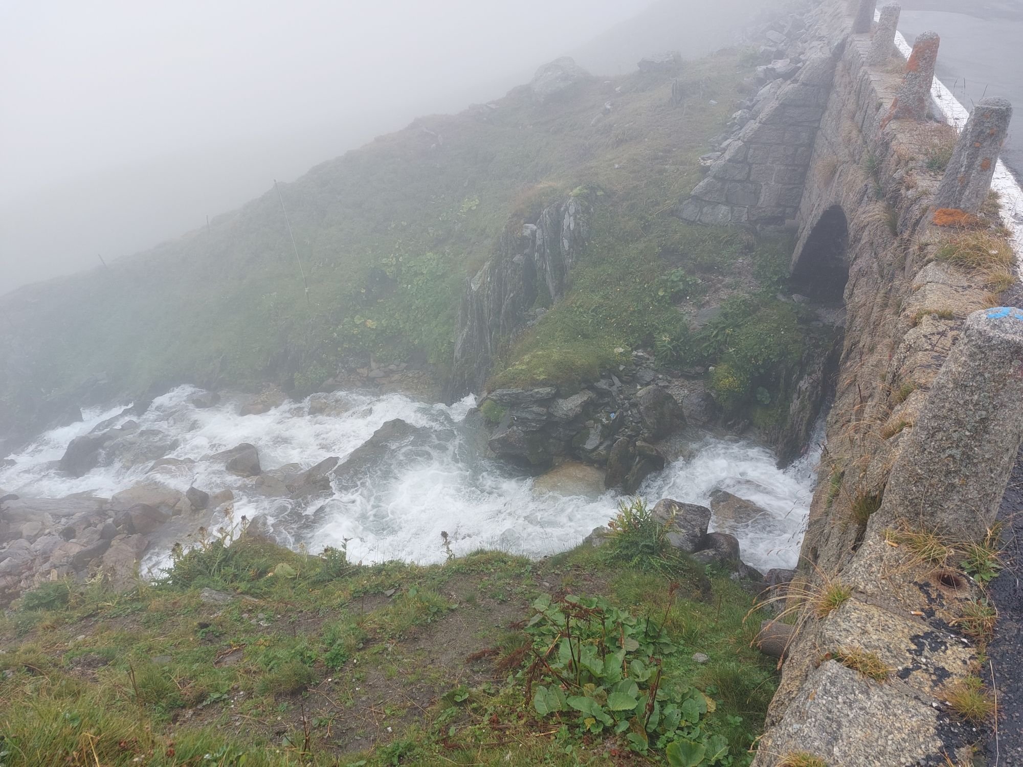Die Aussicht aus dem Camper macht sich hingegen ganz gut. Auch wenn das zerlegte Geländer direkt neben uns nicht gerade vertrauenserweckend ist. Generell wirkt alles hier an dieser Passstraße ziemlich verlassen und verwarlost. Man bekommt ein wenig den Eindruck, die Glanzzeit der schweizer Alpen sei vorbei, zumindest die des zweithöchsten komplett in der Schweiz gelegenen Passes, der darüber hinaus eine Hauptrolle in einem James-Bond-Film gespielt hat.
