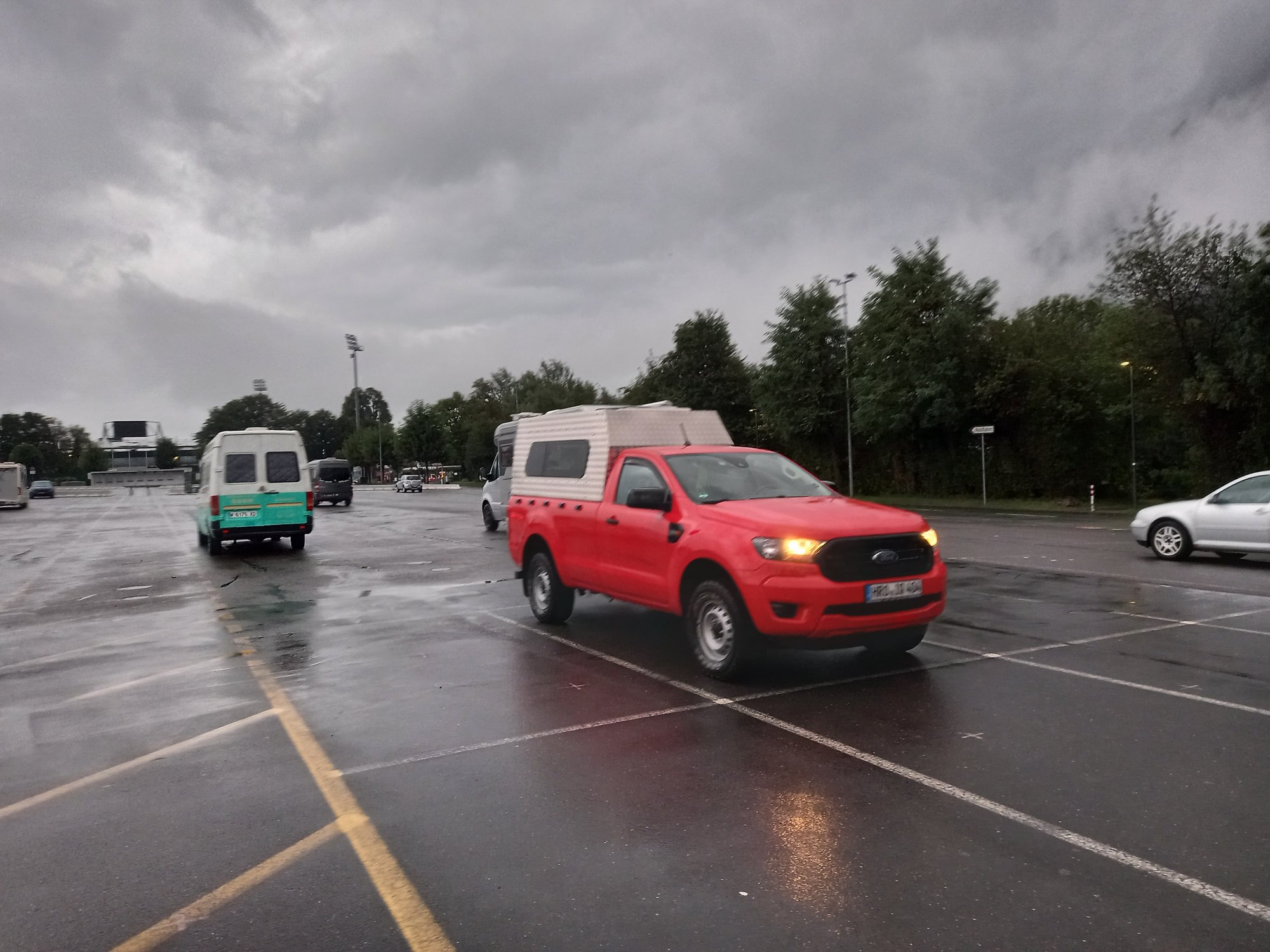 Auf dem Parkplatz haben wir gar nicht so schlecht geschlafen. Es hat zwar die ganze Nacht geregnet, aber das gleichmäßige Prasseln auf dem Camperdach stört nicht weiter. Die Temperatur war dafür optimal, nicht zu warm und nicht zu kalt.