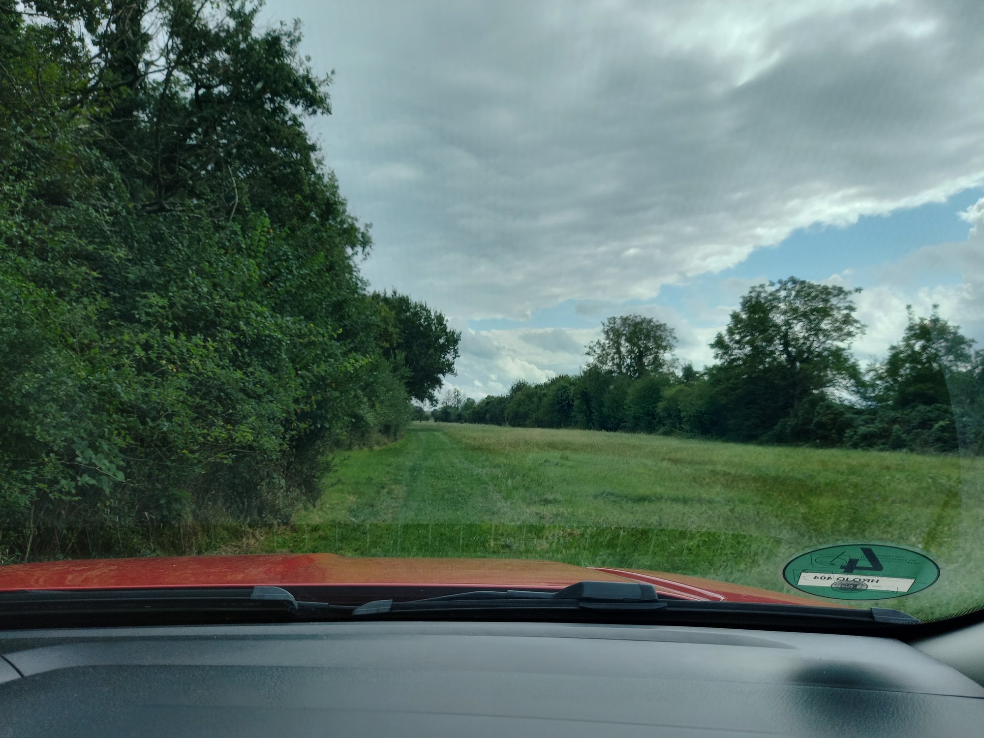 Der Herr Lebensabschnittsgefährte biegt die nächste Straße rechts ab in der Hoffnung, dort irgendwo wenden zu können. Kurz darauf führt rechts ein betonierter Weg rein, der sich auf der Karte wie ein Parkplatz darstellt. Der Blick durch die Frontscheibe erzählt allerdings etwas anderes.