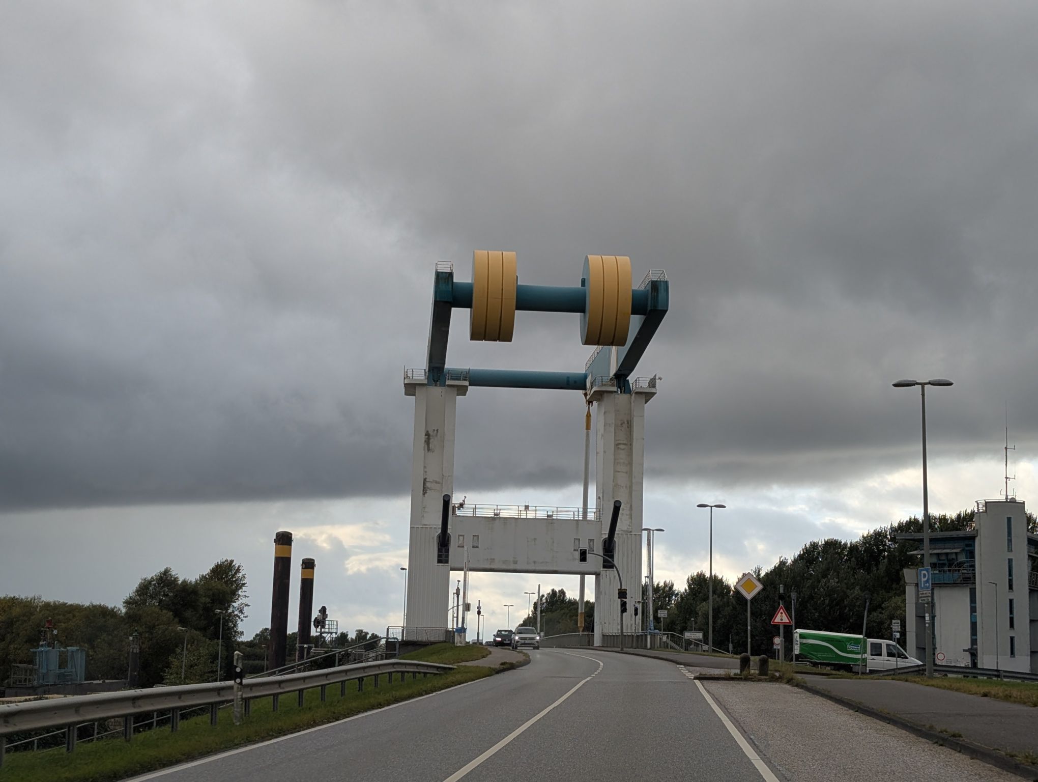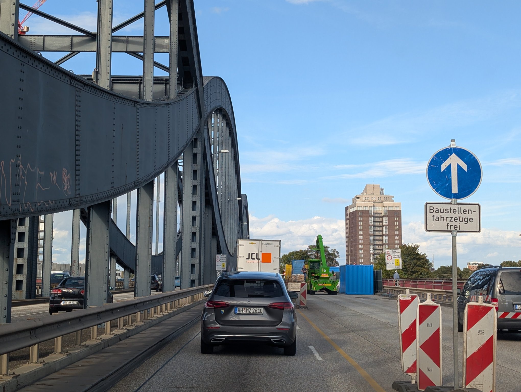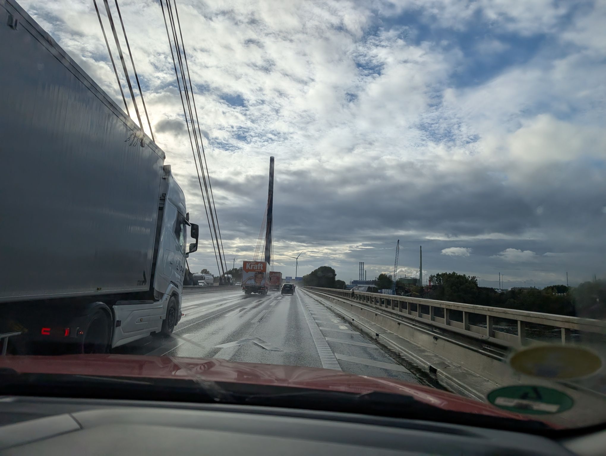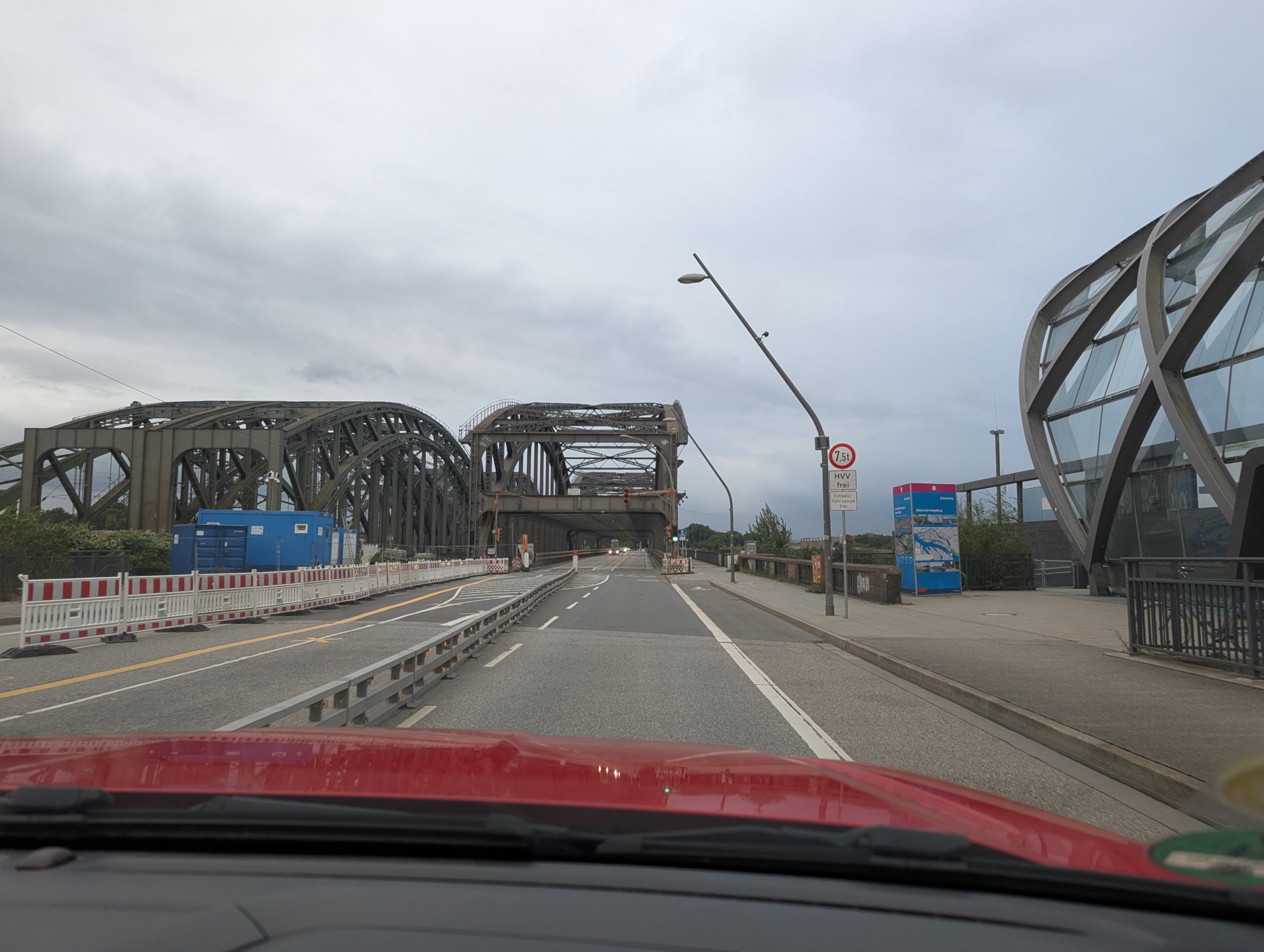 Wir müssen durch Hamburg fahren, was zu Zeiten von Feierabendverkehr schonmal etwas länger dauern kann. Aber dafür fahren wir über die Köhlbrandbrücke, was ich persönlich durchaus ein Highlight finde.