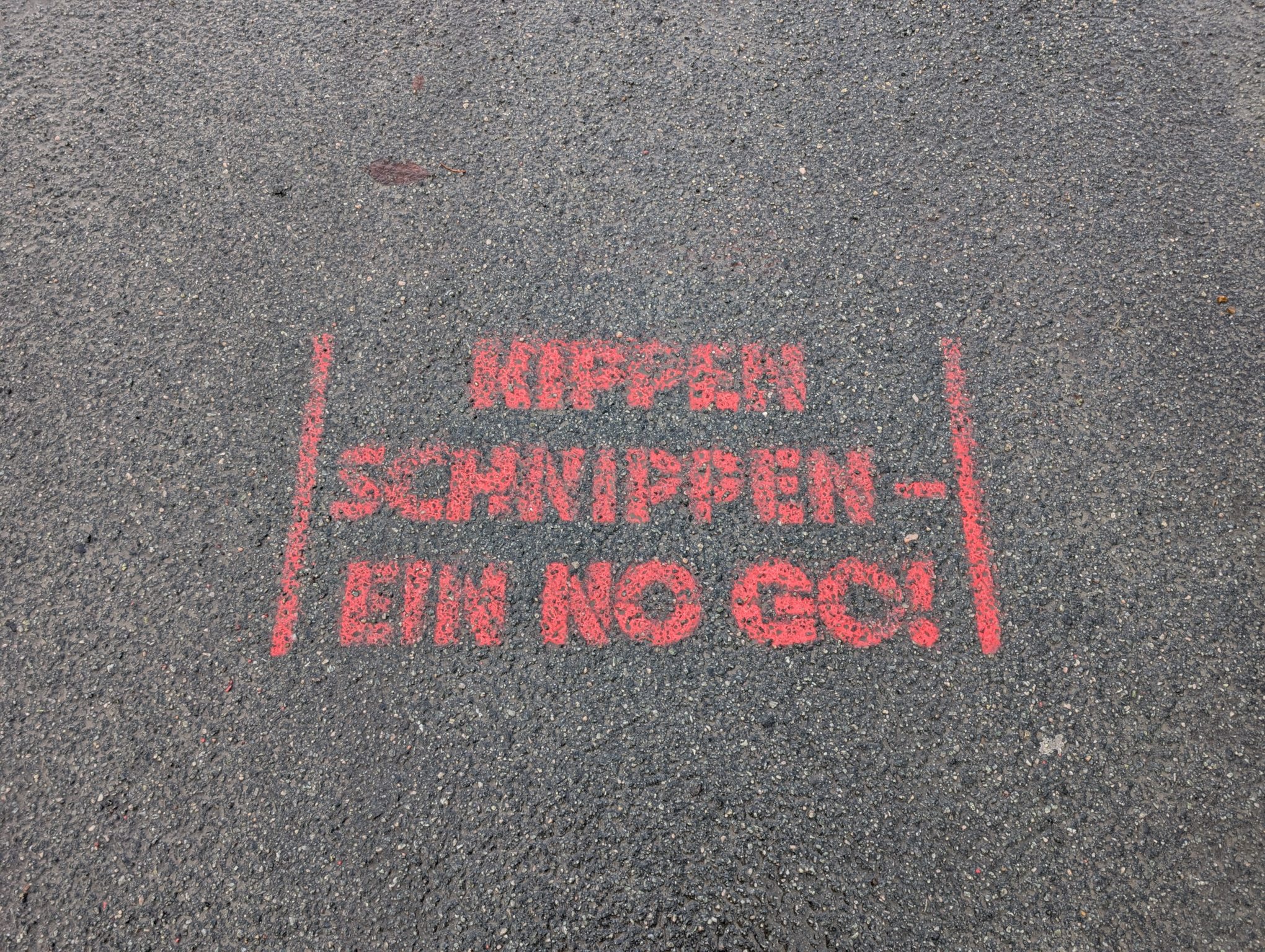 Auf dem Parkplatz sind ein paar wichtige Hinweise für ignorante Besucher gesprüht.