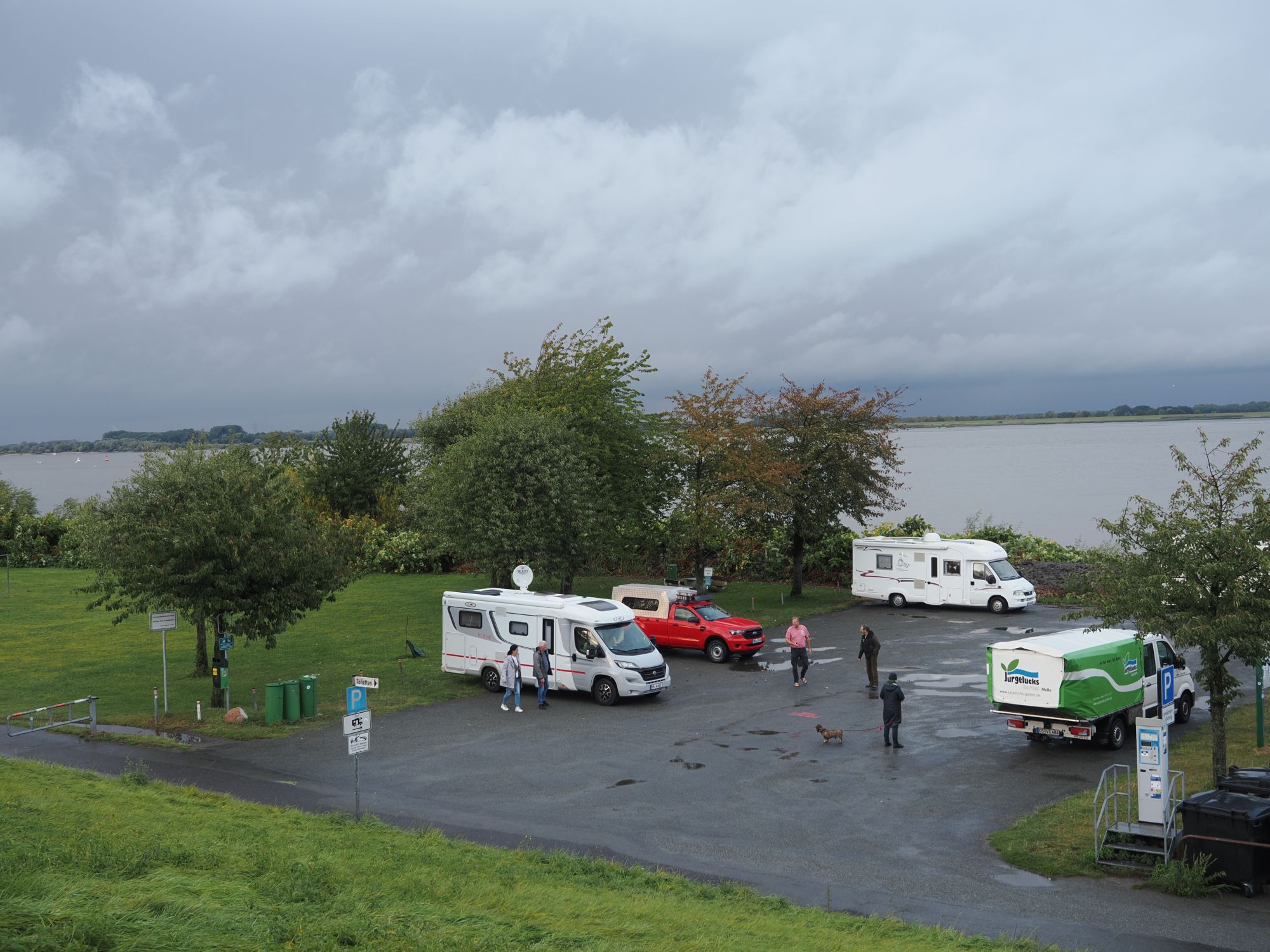 Der Bezahlautomat beim Parkplatz ist immer noch außer Betrieb. Wir stehen also auch diese Nacht wieder kostenlos an der Elbe.