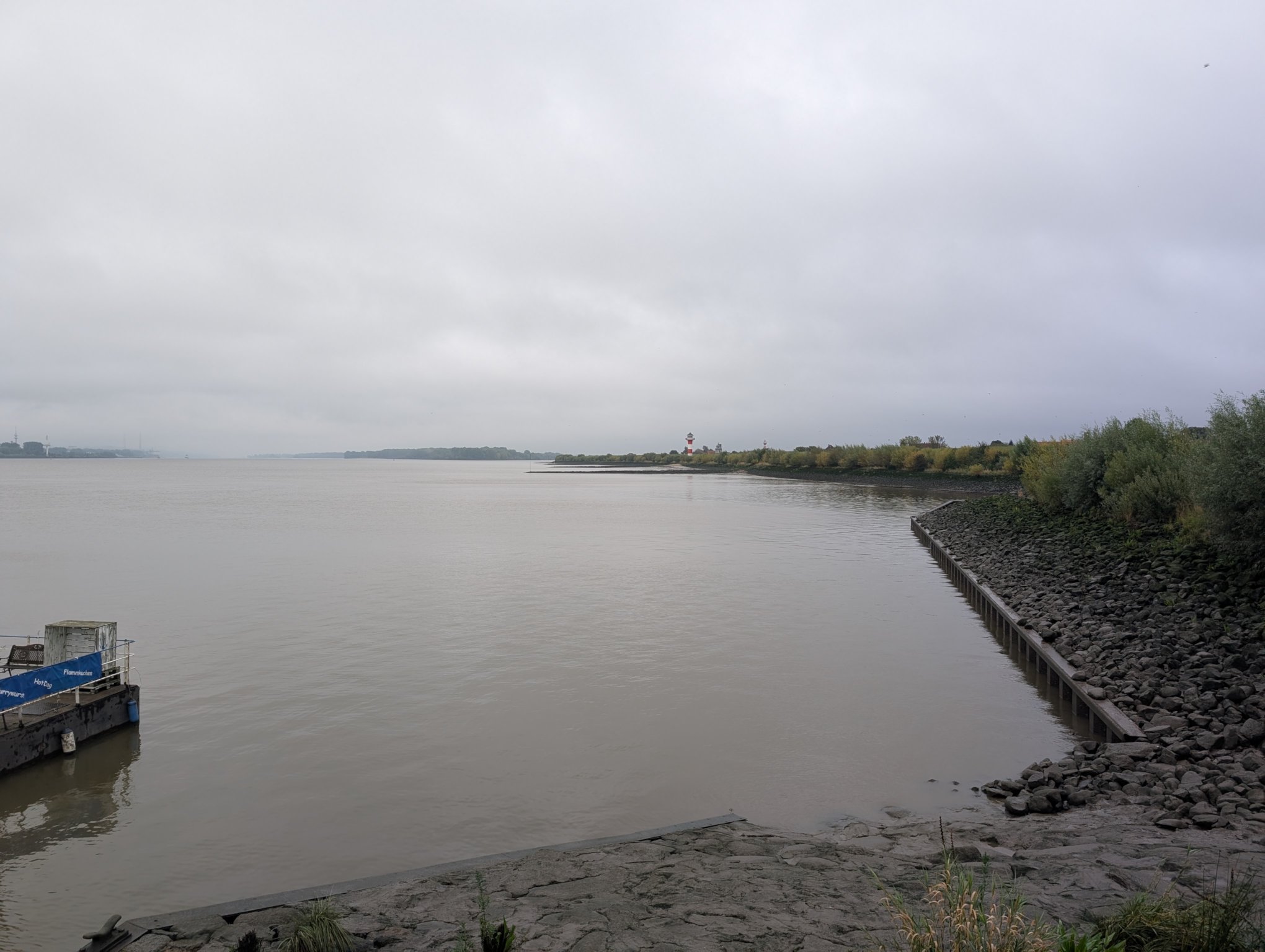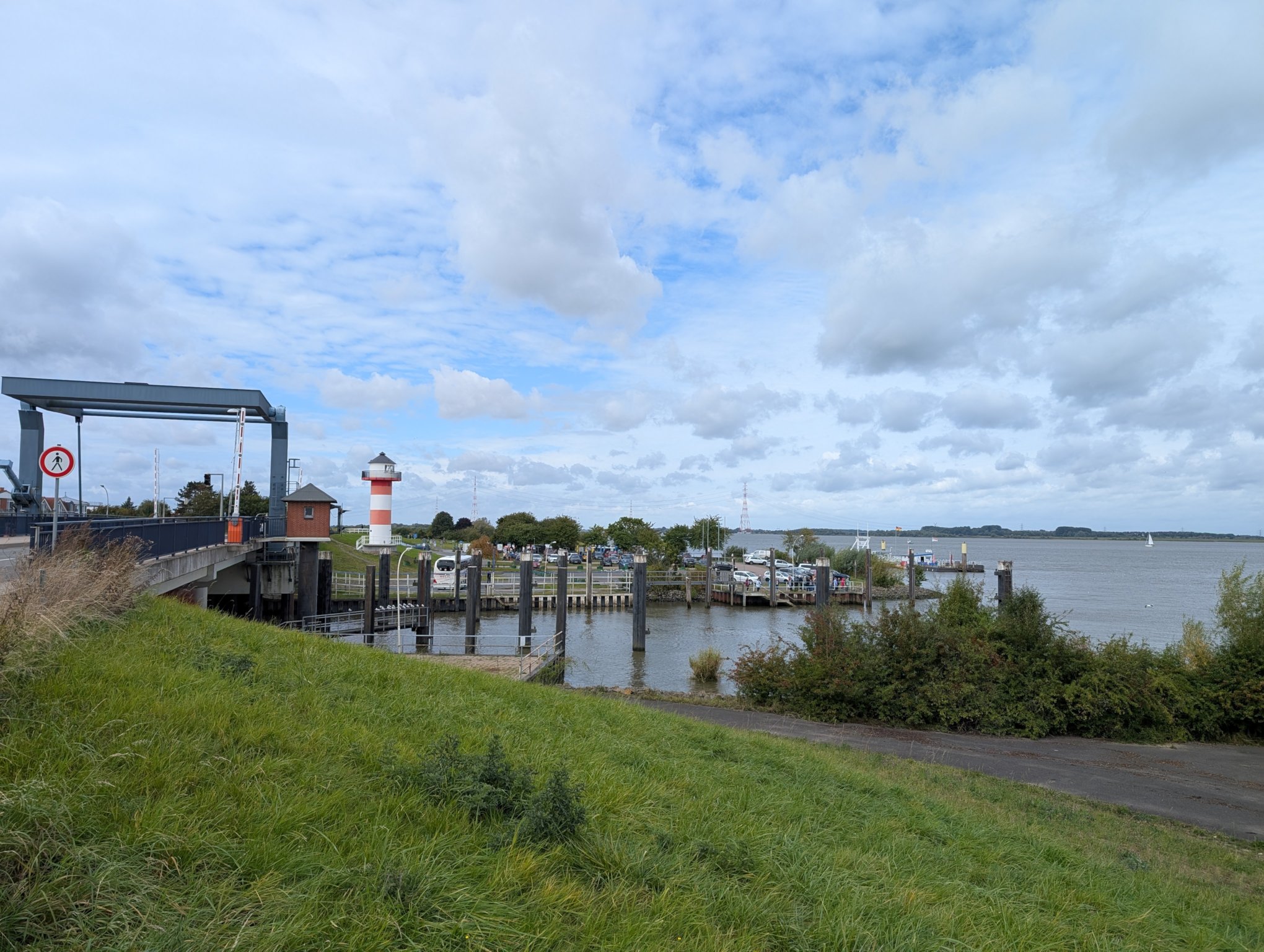 - Blick auf Sperrwerk, Leuchtfeuer, Fähranleger