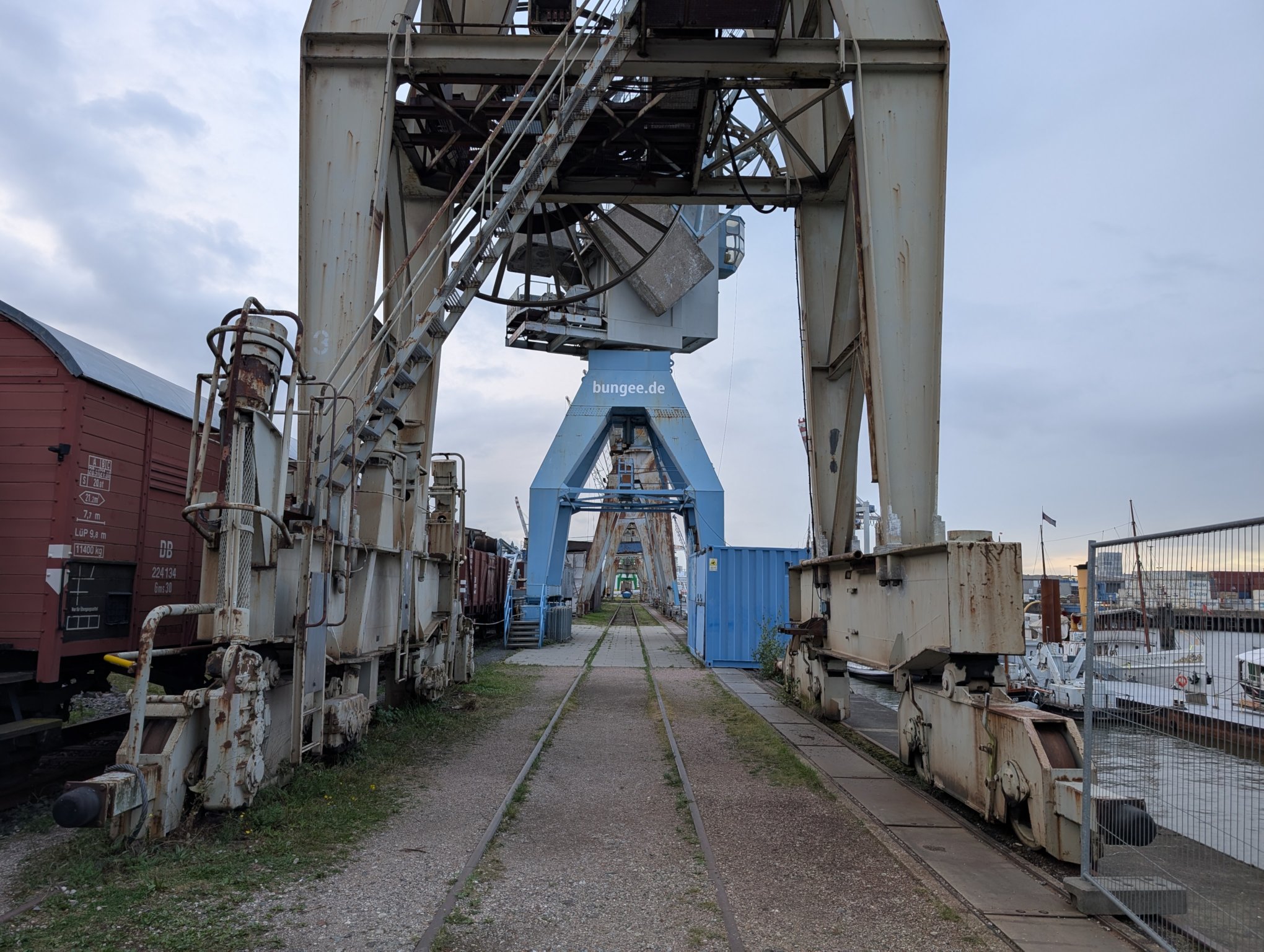 - Blick durch die Hafenkräne