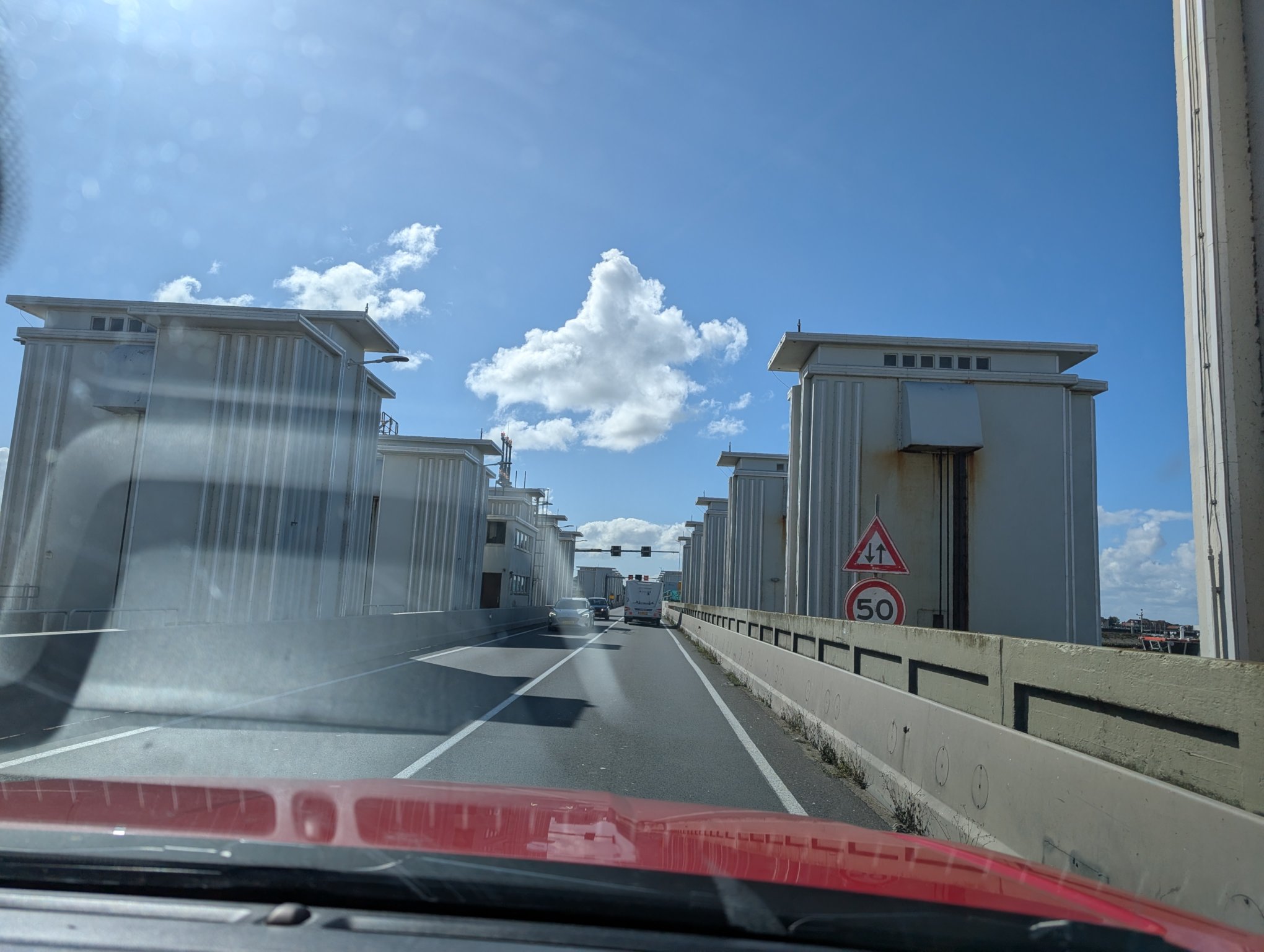 Nach dem Essen geht es weiter. Die Tore des Sperrwerks hier sind nachts übrigens beleuchtet. Bisher habe ich das nur auf Bildern gesehen, das sieht aber recht hübsch aus. Tagsüber sind’s halt nur graue Betonklötze.