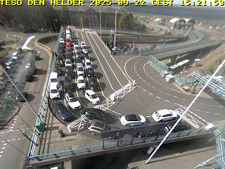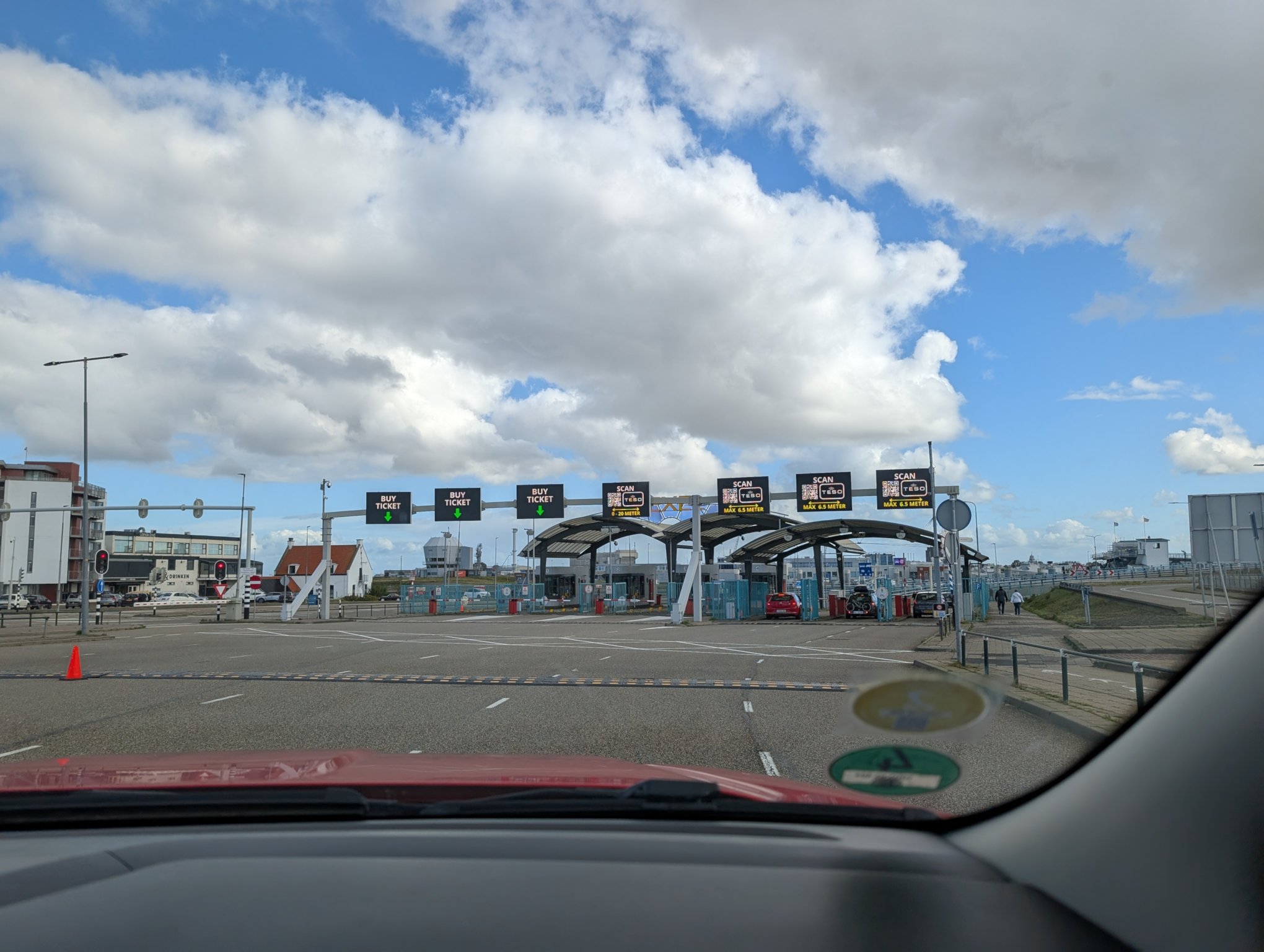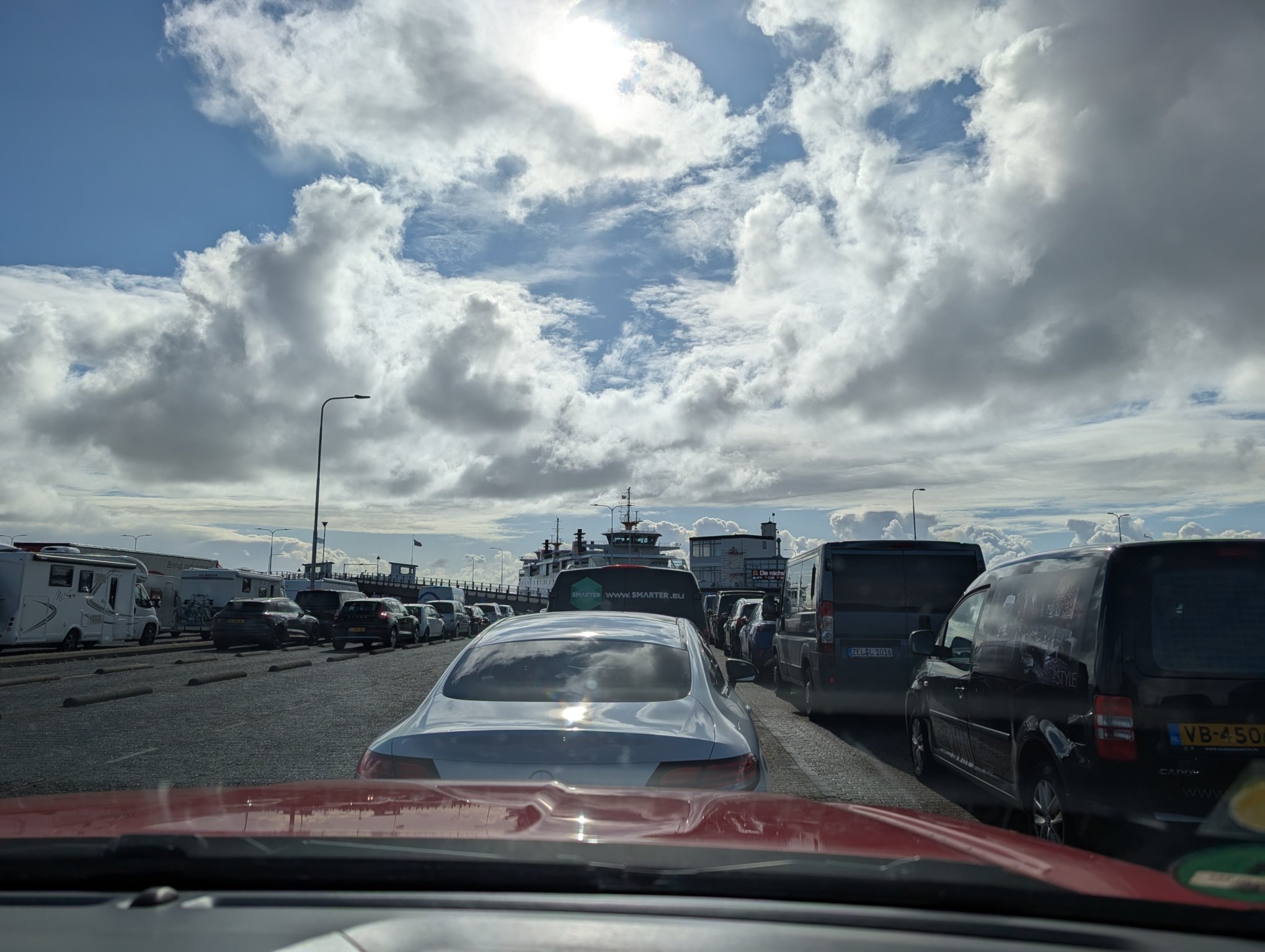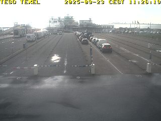 Jetzt geht’s aber erstmal nach Texel. Während wir am Terminal in der Warteschlange stehen, sind wir im Bild der Webcam zu sehen. Der Herr Lebensabschnittsgefährte hat davon einen Screenshot gemacht. Zwischen all den dunklen und weißen Autos, sind der rote Bert und der rote Pkw, der vor uns stand, schon ein krasser Farbfleck. Auf der Fähre darf man im Auto bleiben, weswegen es keine Bilder von Bord gibt.