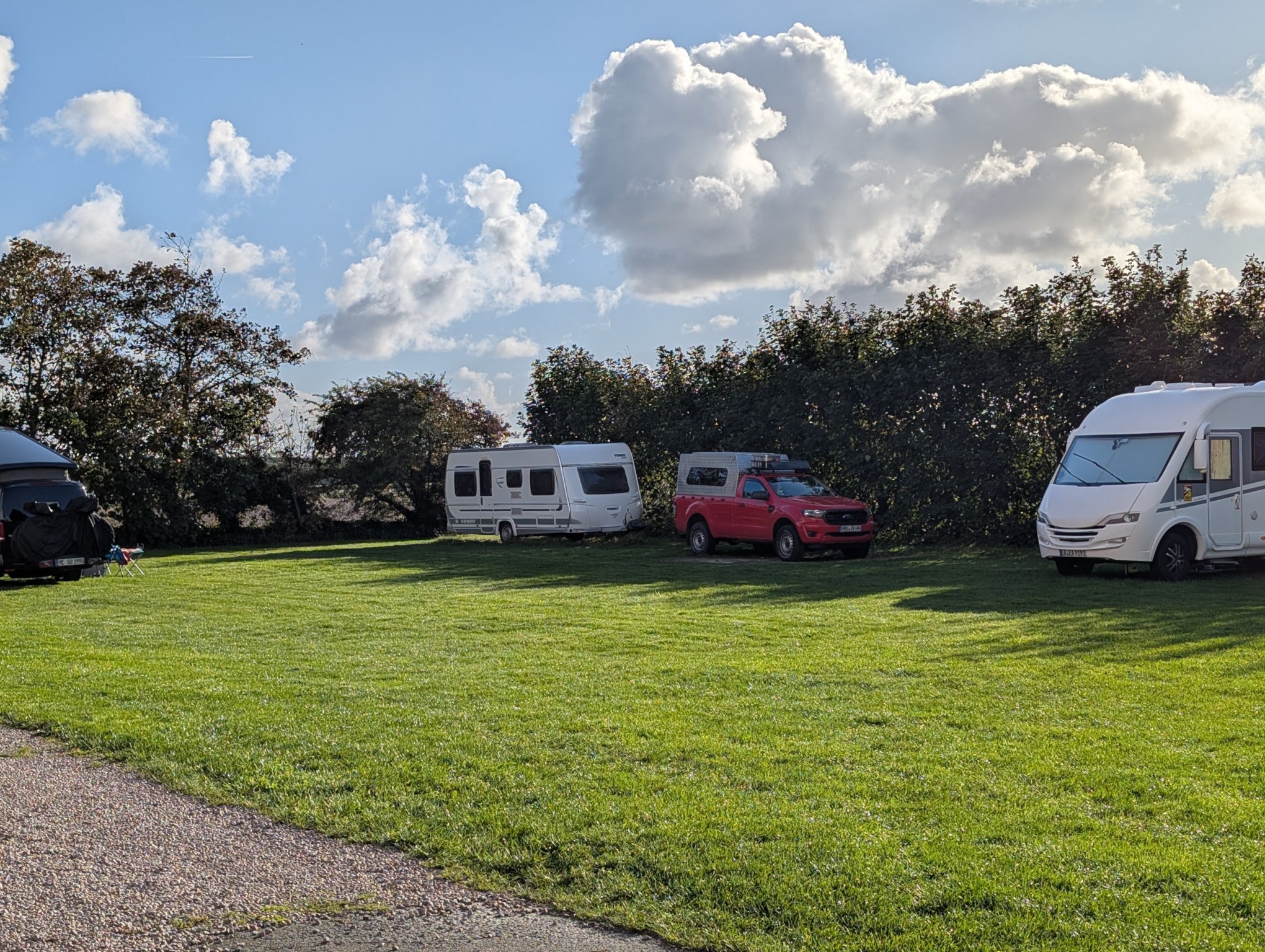 Zudem ist er sehr sympathisch und findet den Ausbau unseres Campers toll. Die meisten, die hier stehen, sind dann doch eher spießig mit überdimensionaler Weißware, einer sogar mit Anhänger und einem Smart ausgerüstet. Nun denn. Freundlich sind sie alle und die Sanitäranlagen sind top.