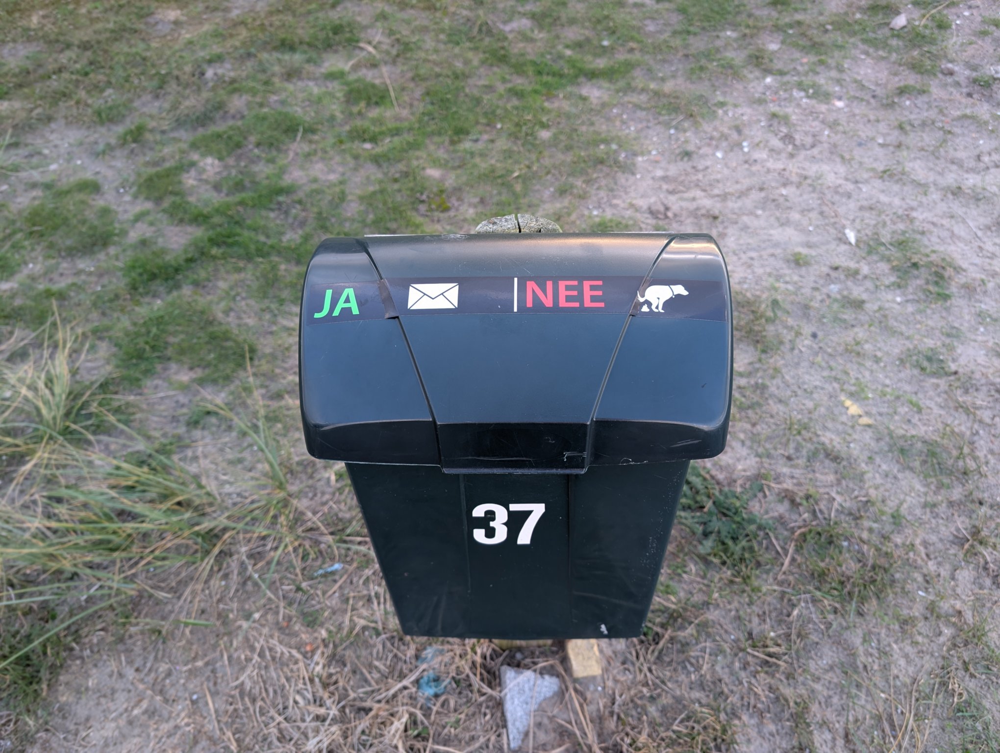 - Briefkasten mit Aufklebern: Briefe ja, Hundekotbeutel nein.