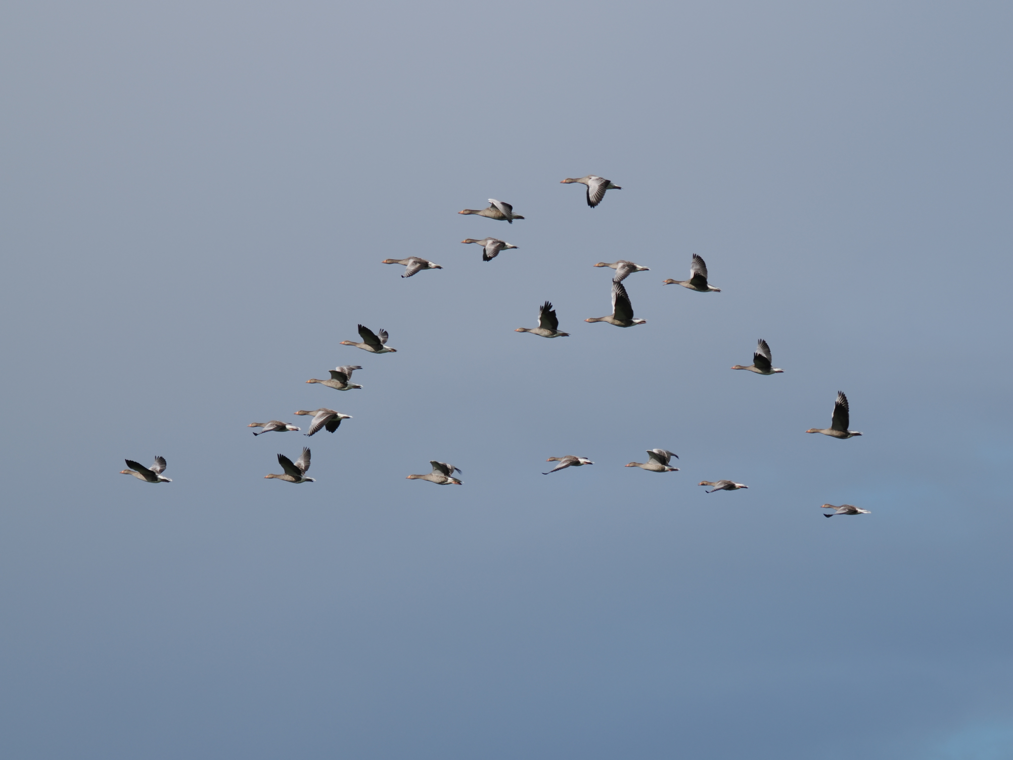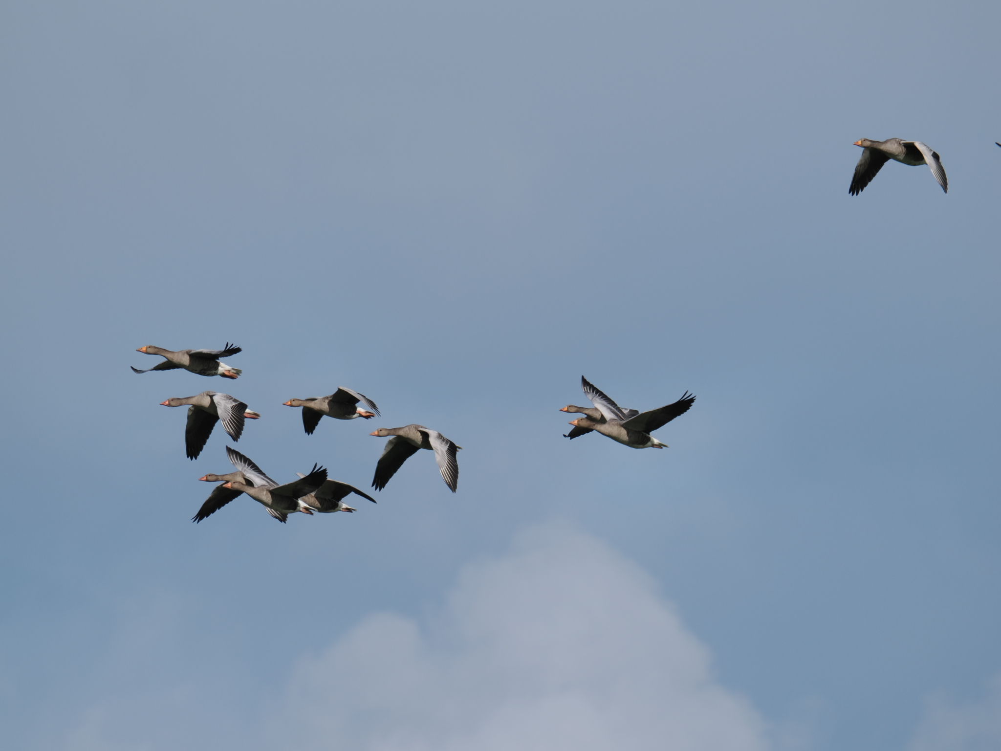Weit kommen wir erstmal nicht, nach fünf Minuten der erste Photo-Stopp. Neben uns in einem Feld sitzen jede Menge Kiebitze. Die sieht man ja nicht mehr so häufig, da muss man natürlich anhalten und sie knipsen. Bei der Gelegenheit werden auch noch ein paar vorbeifliegende Gänse abgelichtet.