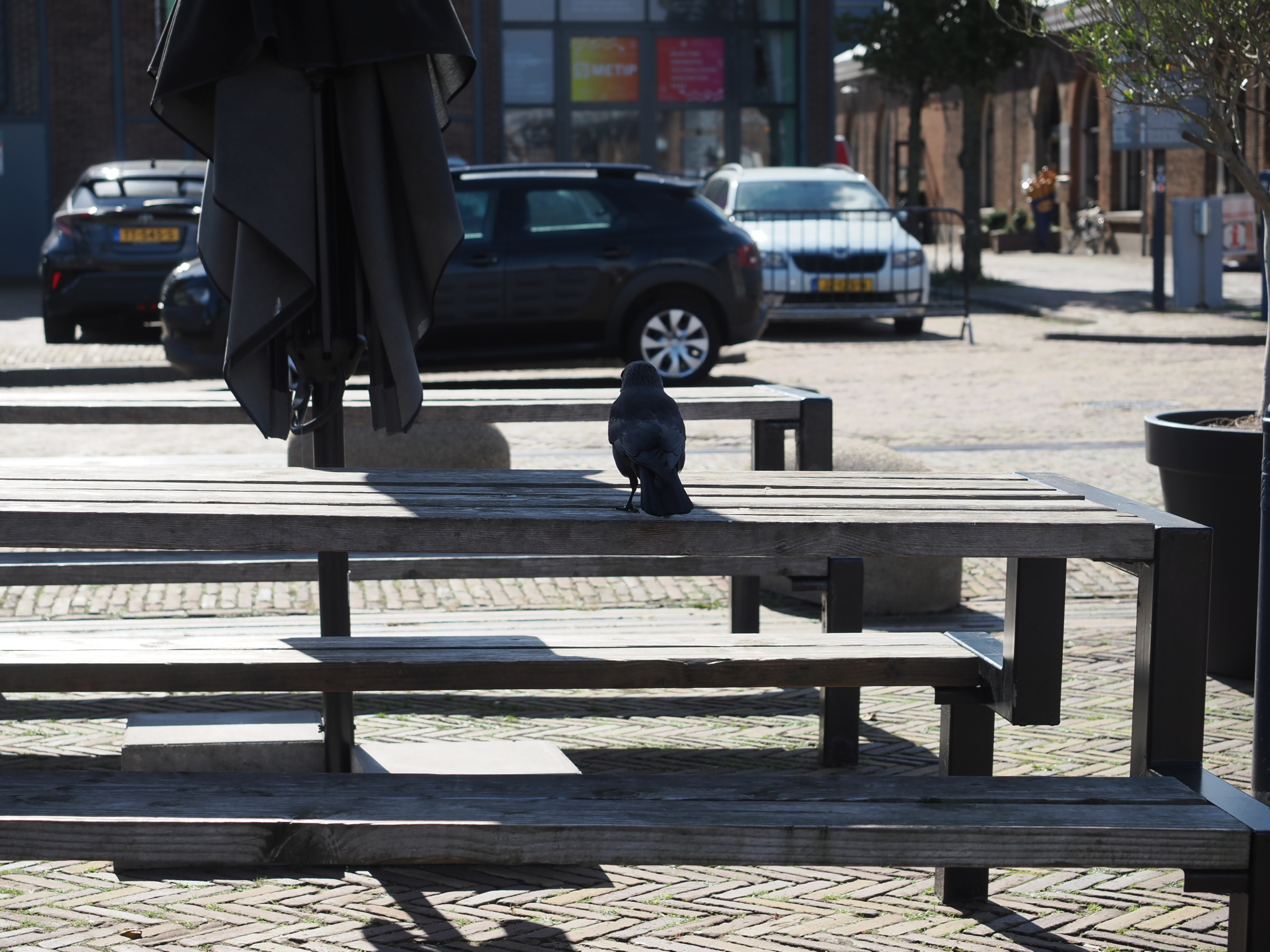 Die lokale Dohlen-Population nutzt die Wartezeit der Fahrzeuge übrigens geschickt aus: Sie landen direkt vor den Autos, picken tote Insekten aus den Kühlungsschlitzen und von den Nummernschildern und laufen dann zum nächsten Fahrzeug.
