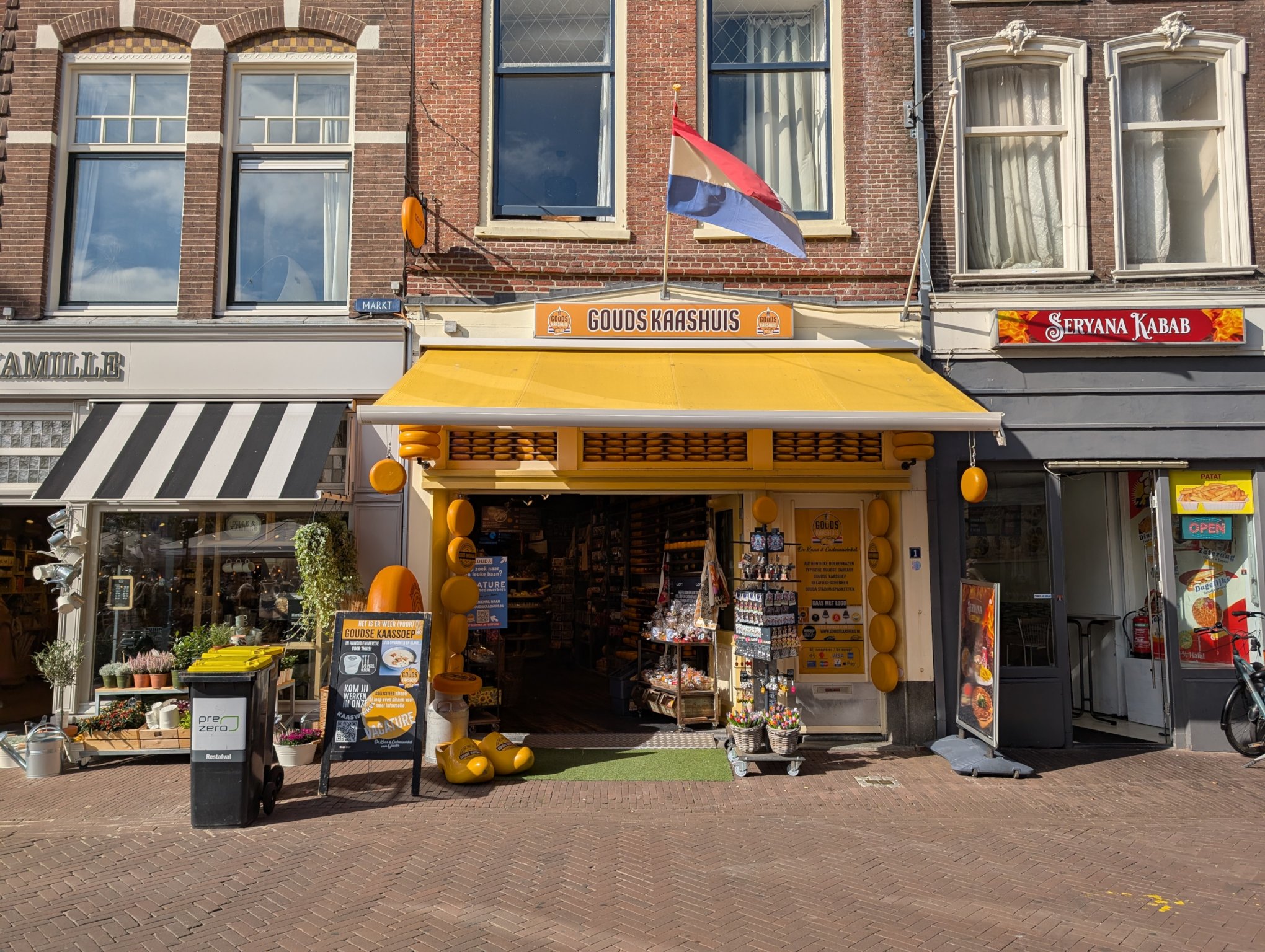 Als erstes kommen wir am ’t Kaaswinkeltje vorbei, einem Käseladen, der nach Recherchen des Herrn Lebensabschnittsgefährten die besten Bewertungen der Käseläden in Gouda hat. Aber bevor wir einkaufen, drehen wir erst noch eine Runde durch die Fußgängerzone.