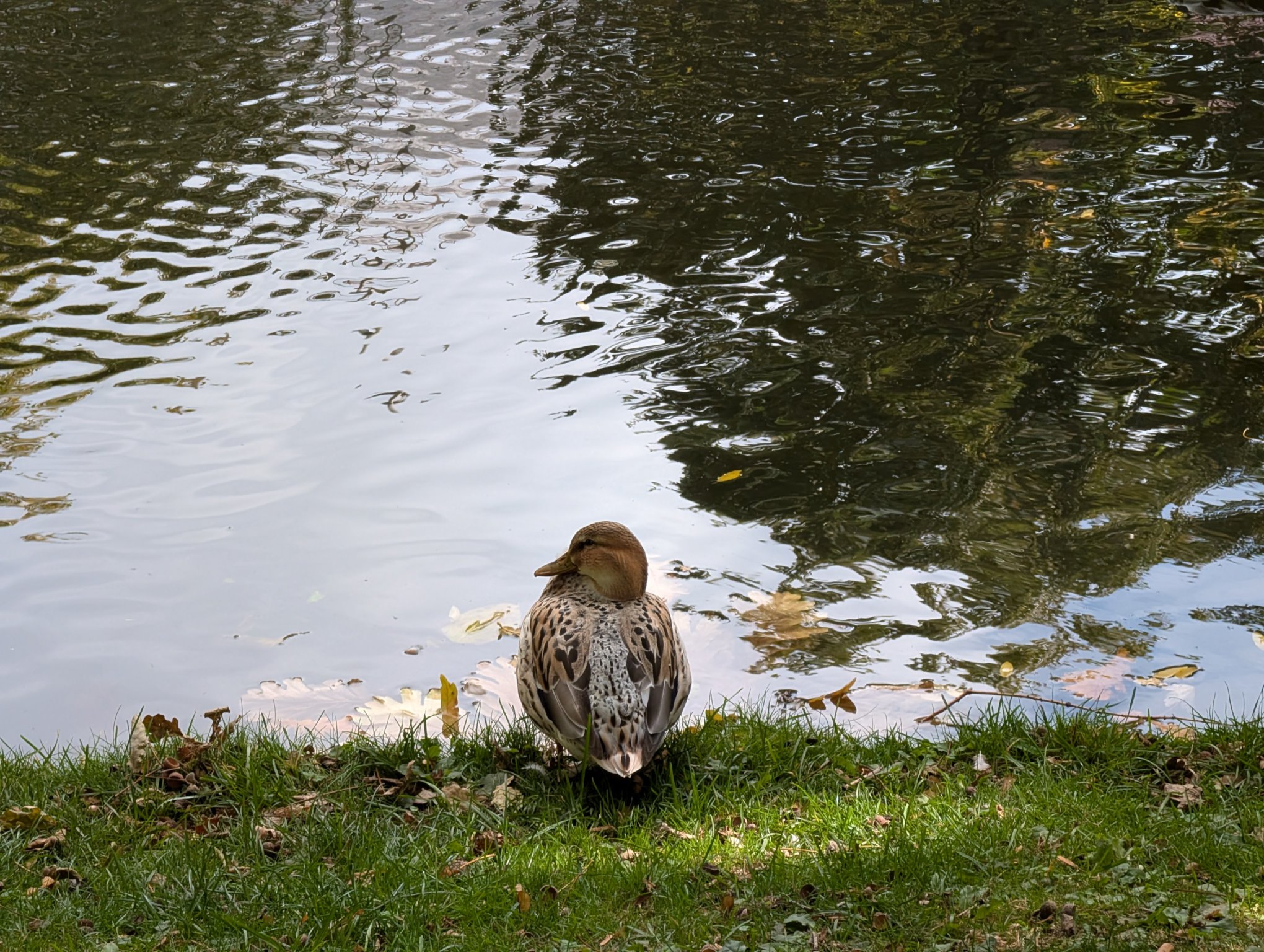 Auf der Brücke über den Fluss stehend höre ich einen Vogel, der mir gänzlich unbekannt vorkommt. Ich frage die App und bekomme zur Antwort, dass dies ein Halsbandsittich sein soll. Das halte ich für eher unwahrscheinlich.