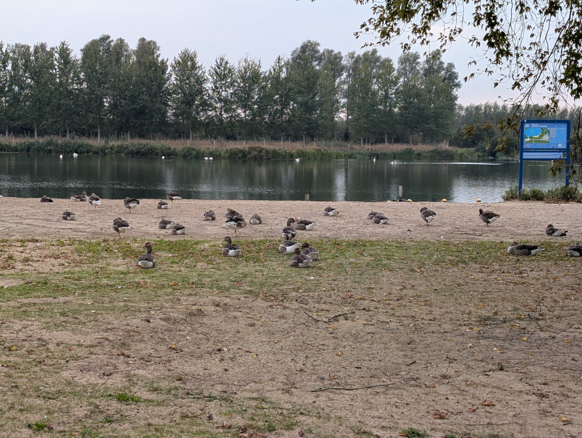 Wir gehen zurück zu unserem Stellplatz, vorbei am Fluss mit seinen vielen Blesshühnern. Das Blesshuhn ist der Vogel dieser Reise. Ich habe noch nie so viele Blesshühner gesehen wie hier in den Niederlanden. Anscheinend trifft man sich hier zum Überwintern. Gleiches gilt für die ebenfalls omnipräsenten Grau- und anderen Gänse.