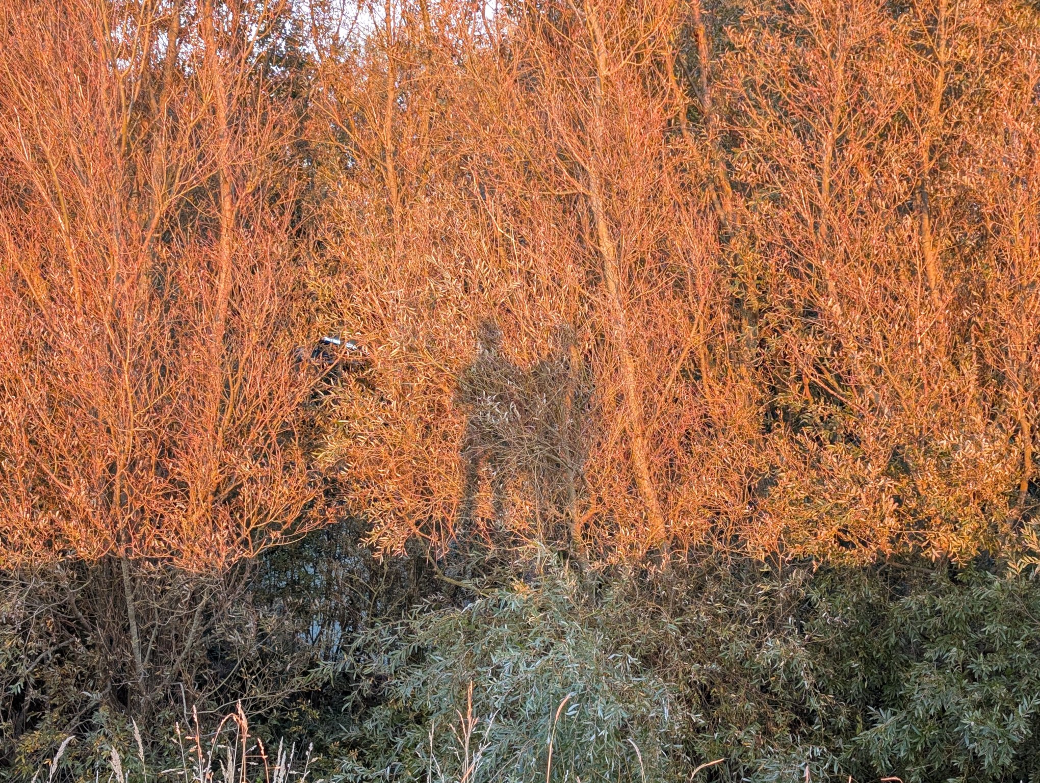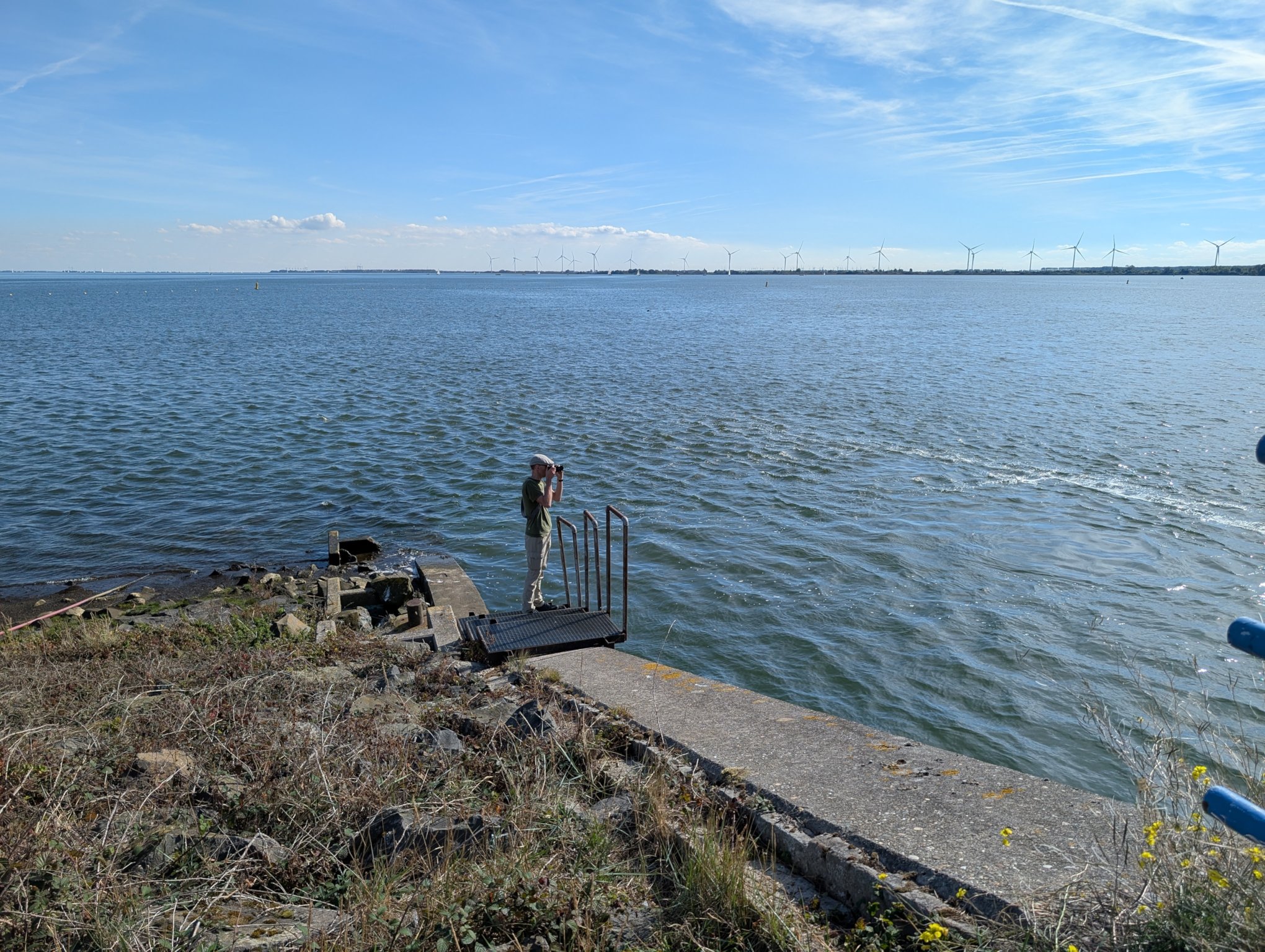 Leider kommt man da nicht so gut dran. Wir sind zwar auf den Deich, den man im zweiten Bild sieht, raufgelaufen, aber dahinter ist noch ein zweiter Deich, wie man auf dem ersten Bild erkennen kann. Also viel lässt sich nicht knipsen, auch nicht, wenn wir unser Auto als Ausguck benutzen.