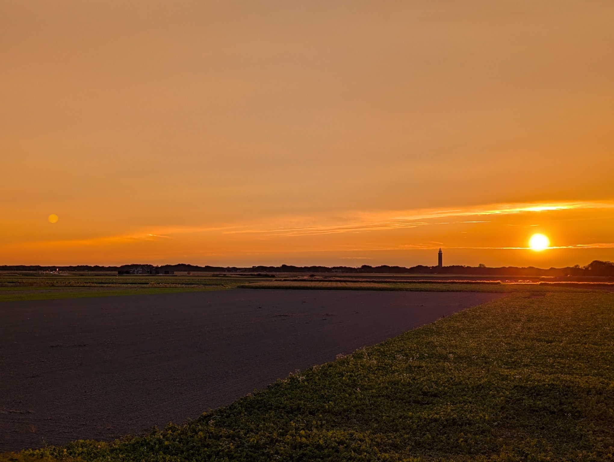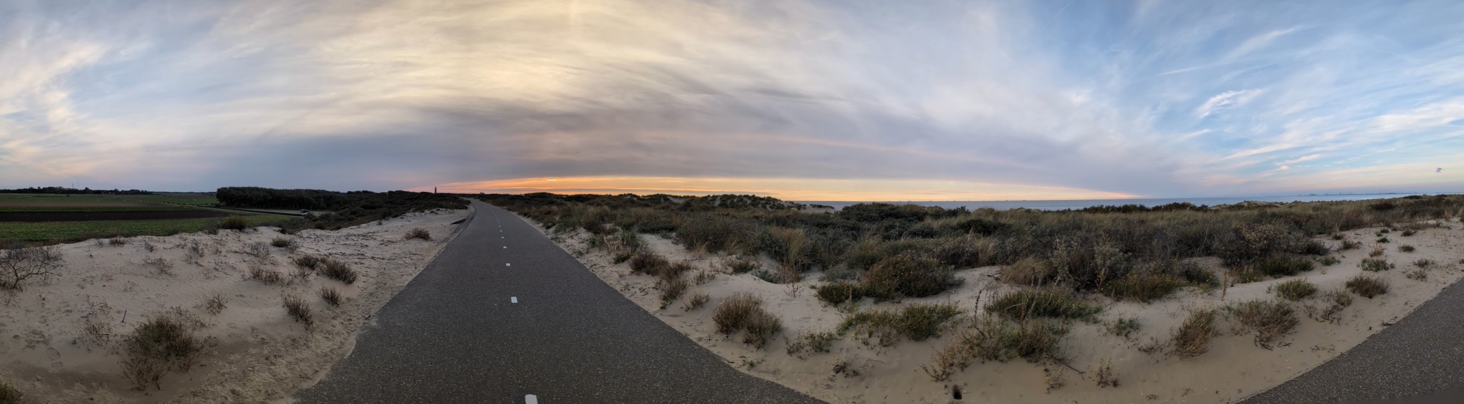 Für den Rückweg nutzen wir den Weg oben auf den Dünen. Die Sonne geht langsam unter und es bietet sich ein spannendes Panorama.