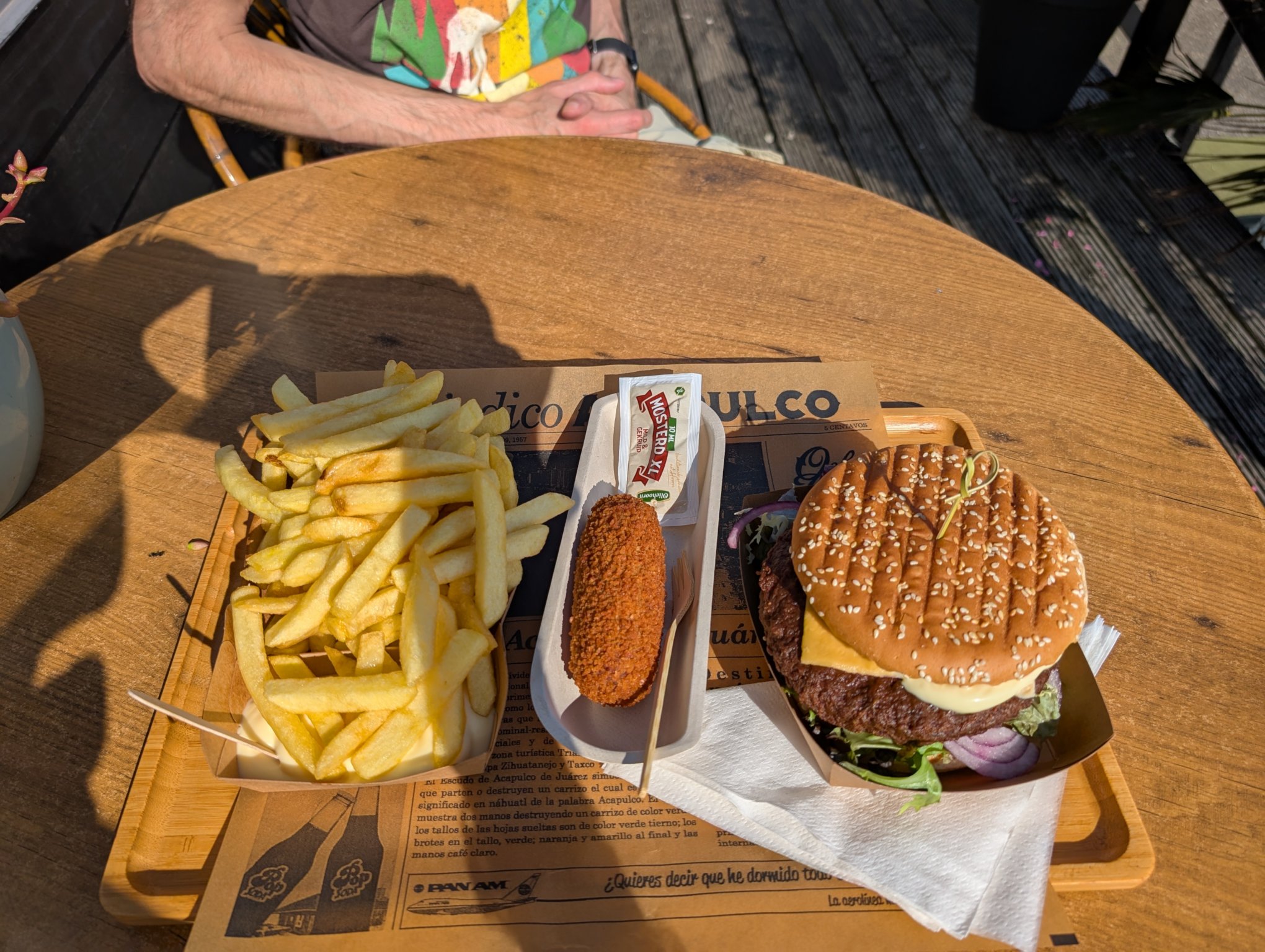 Bei Jans an der See gibt es einen Burger für den Herrn Lebensabschnittsgefährten und eine Krokette für mich. Außerdem teilen wir uns eine Portion Pommes. Ich kann ja nicht so viel essen. Anschließend gibt es noch ein Eis.