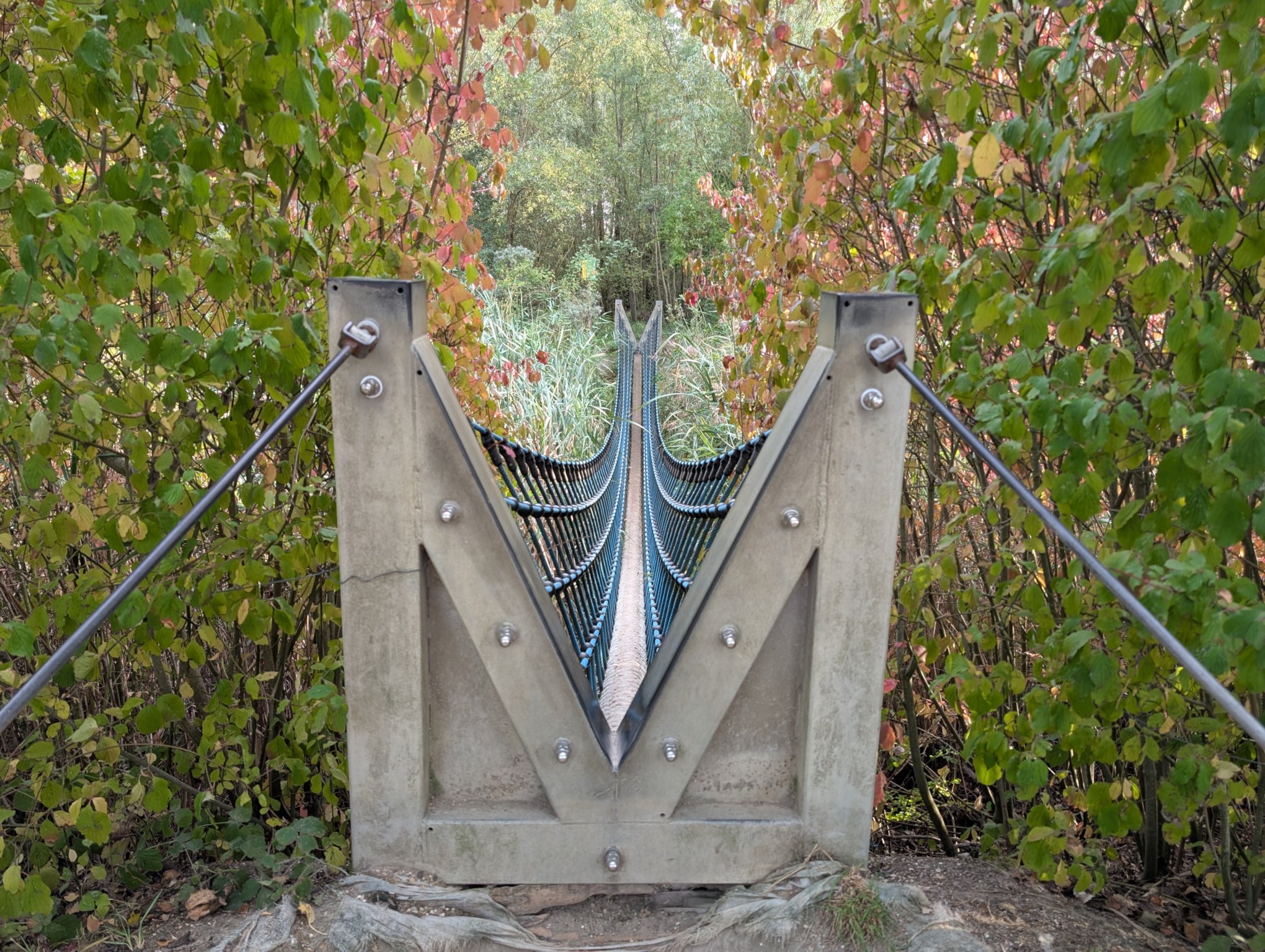 Allerdings gehe ich unter keinen Umständen über diese Hängebrücke. Die ist viel zu wackelig und vermutlich von Millionen von Mücken bewacht. Never ever! Der Herr Lebensabschnittsgefährte geht zwar ein paar Schritte drauf, lässt es dann aber aufgrund Sinnlosigkeit sein. Viel sehen wird man dort eh nicht, weil das Schilf so hoch steht.
