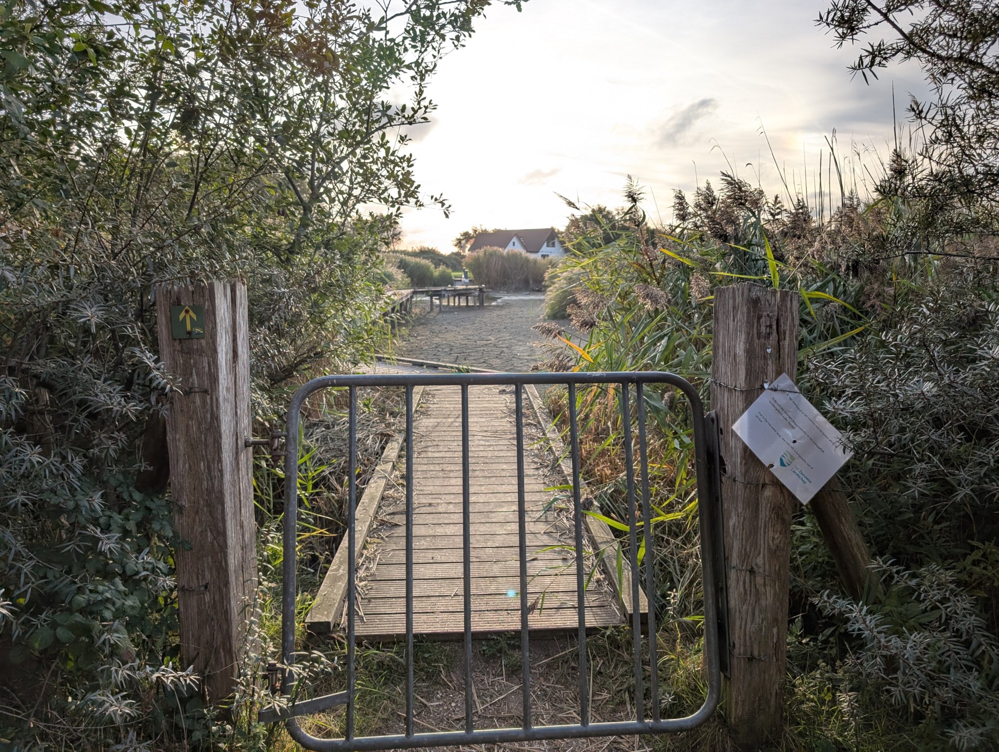 Zusammen mit dem Damm wurde etwa in der Mitte eine künstliche Insel aufgeschüttet, mit einem Feriendorf und einem schönen Sandstrand versehen. An dem Strand gehen wir ein bisschen spazieren.