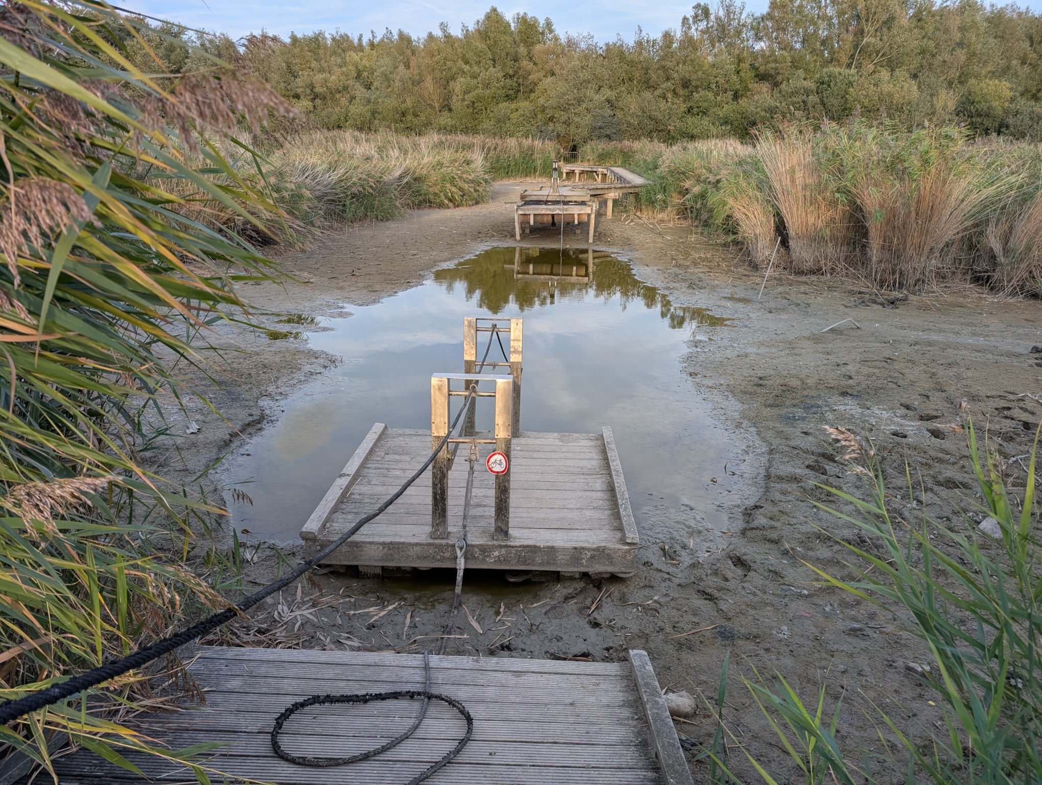 Wir gehen einen etwas weiteren Weg und landen dann doch noch im “Fährhafen”. Dabei handelt es sich um eine Handseilfähre. Allerdings kann man die derzeit nicht nutzen, weil der Tümpel ausgetrocknet ist.